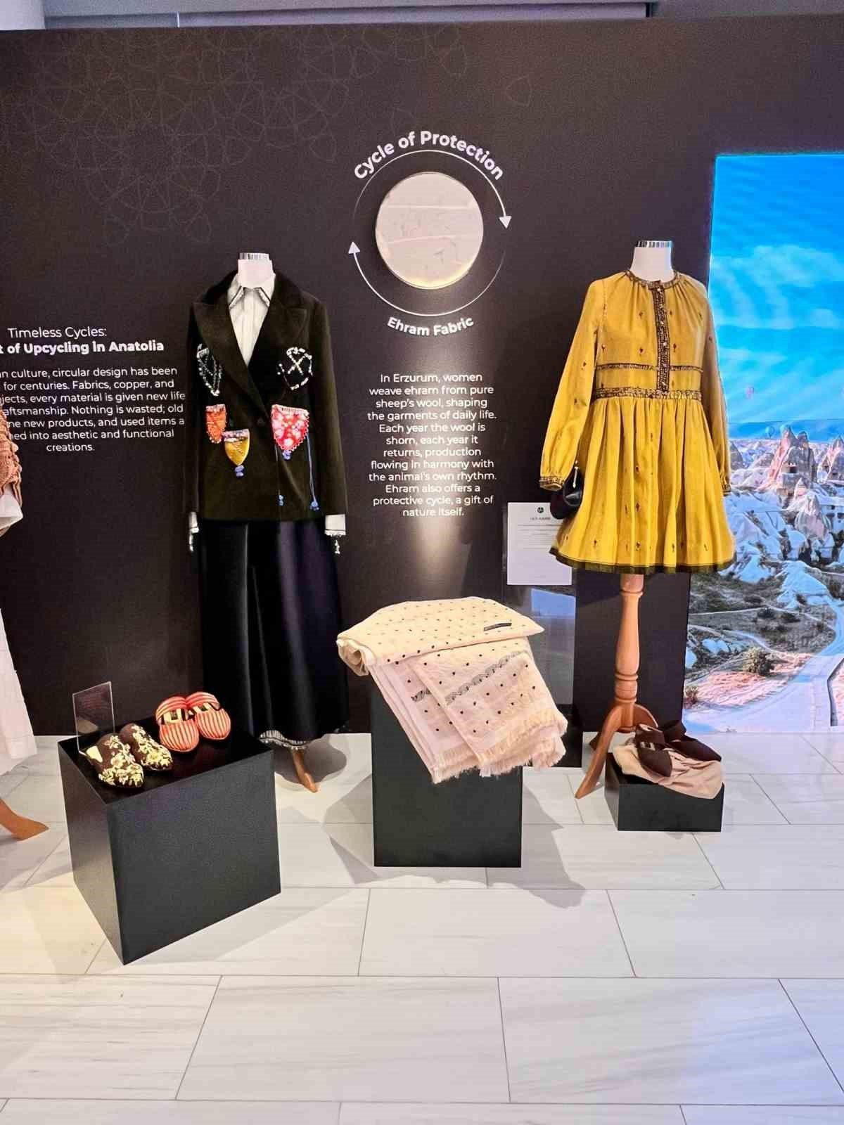 Anadolu’nun binlerce yıllık bilgi, zanaat ve kültür birikimini modern tasarım anlayışıyla bir araya getiren sergide, Kuzeydoğu Anadolu Kalkınma Ajansı (KUDAKA) koordinasyonuyla Bayburt ve Erzurum’un coğrafi işaret tescilli ürünü “ehram dokuması” uluslararası alanda tanıtıldı. Yöresel kimliğin güçlü bir simgesi olan ehramdan tasarlanan kıyafetler, ev tekstili, dekorasyon ve aksesuar ürünleri dünyanın dört bir yanından gelen davetlilerin beğenisine sunuldu.