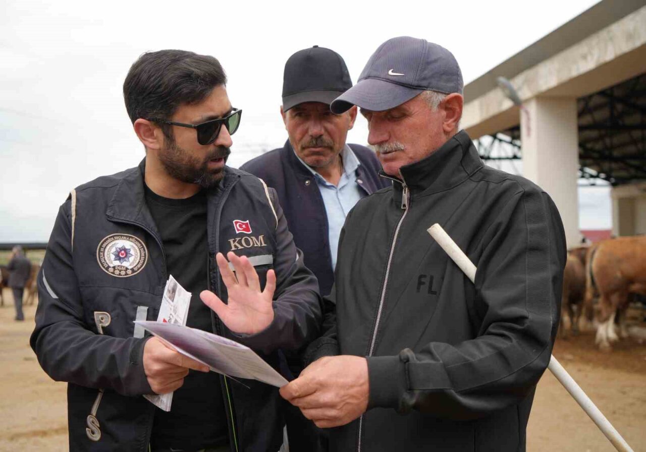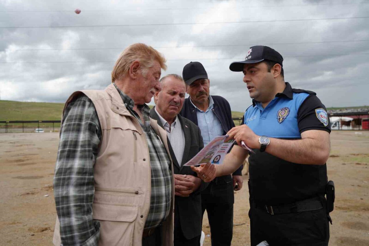 Kurban Bayramı’na sayılı günler kala Bayburt İl Emniyet Müdürlüğü ekipleri, canlı hayvan pazarında vatandaşların hayvan alım-satım sürecinde mağduriyet yaşamaması adına bilgilendirmelerde bulundu. Vatandaşlar sahte para, dolandırıcılık, hırsızlık ve sahte kurban siteleri konularında detaylı bir şekilde bilgilendirildi.
