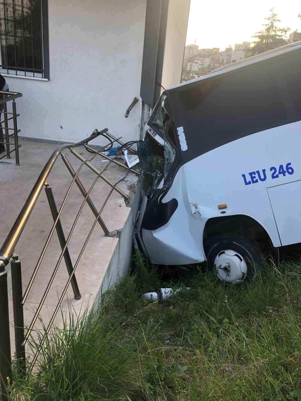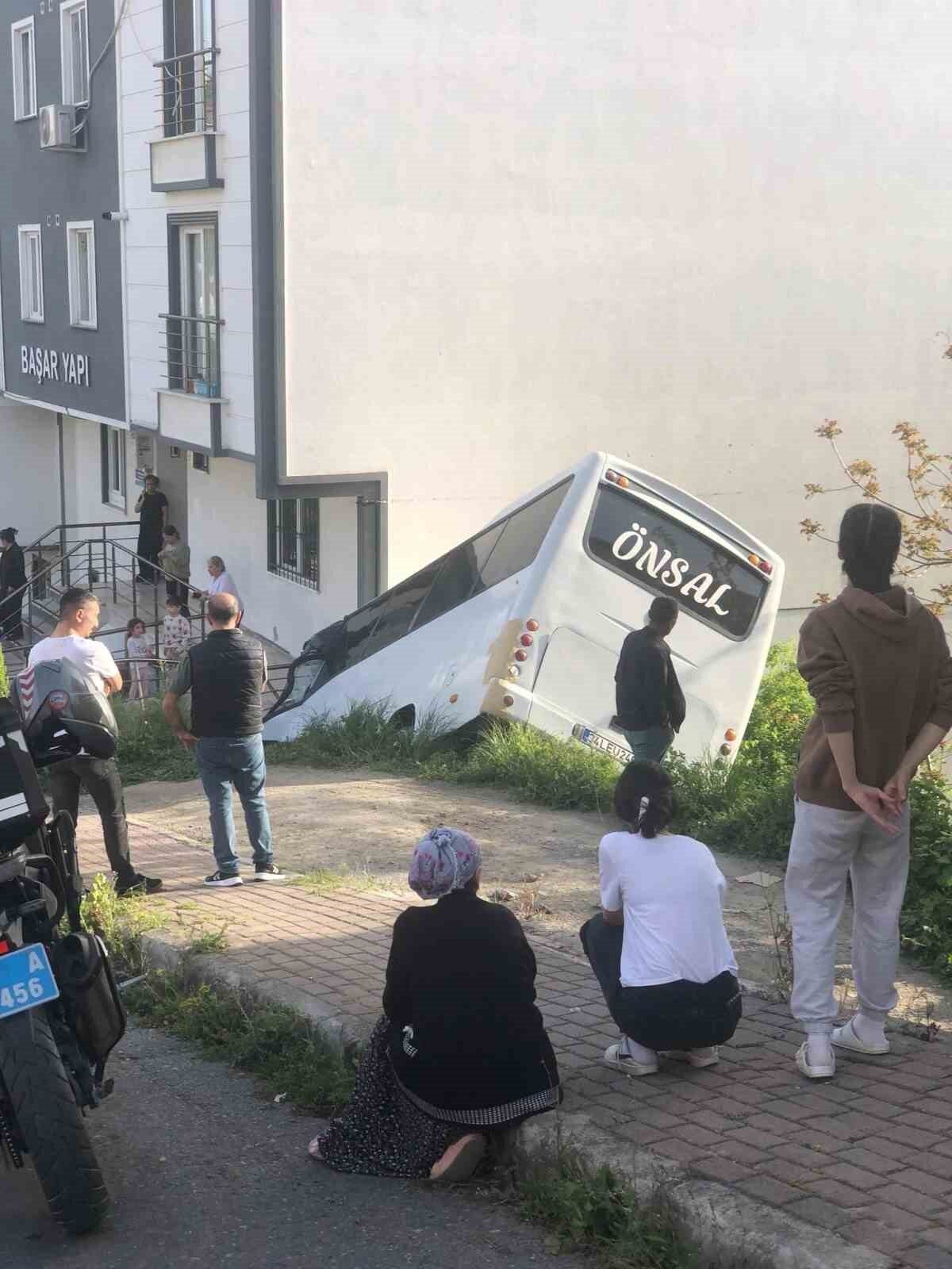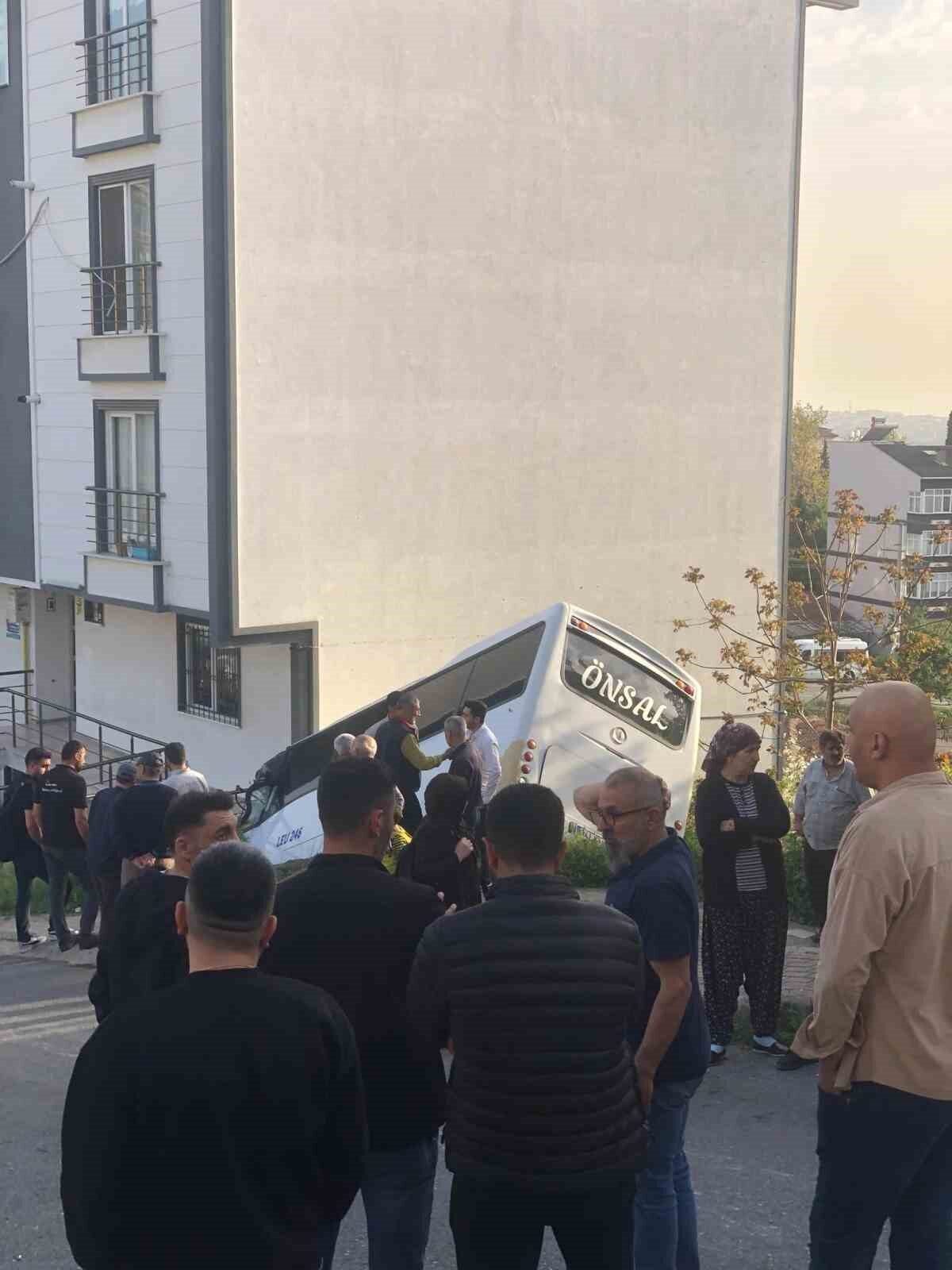 KOCAELİ’NİN ÇAYIROVA İLÇESİNDE EL FRENİ BOŞALAN PARK HALİNDEKİ MİDİBÜS, APARTMAN DUVARINA ÇARPARAK DURABİLDİ.
