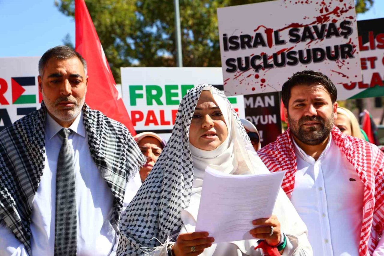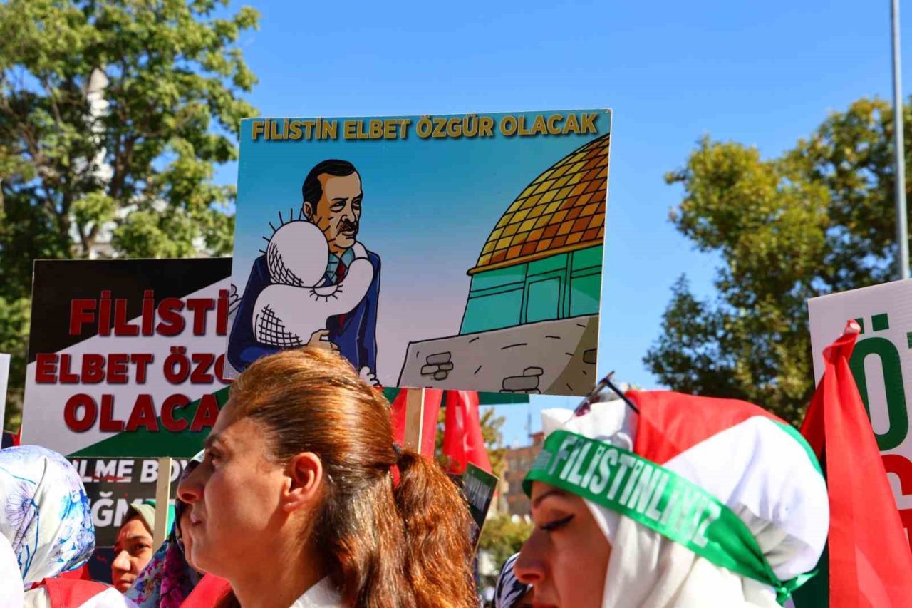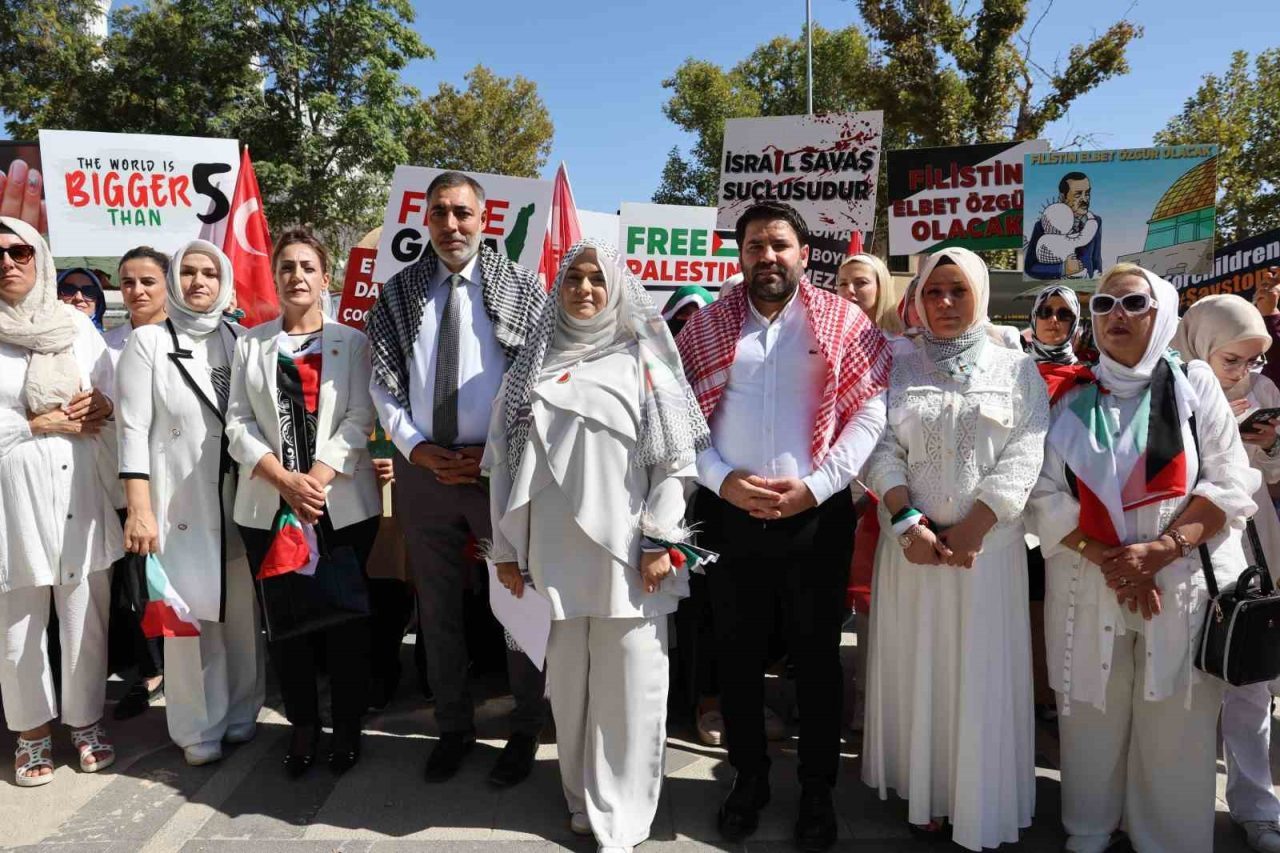 AK Parti Elazığ Kadın Kolları, Gazze’ye destek için 15 Temmuz Demokrasi Meydanı’nda “Gazze İçin Sessiz Çığlık” etkinliği düzenledi. Kadınlar, “Katil İsrail” ve “Özgür Filistin” dövizleri taşıdı.