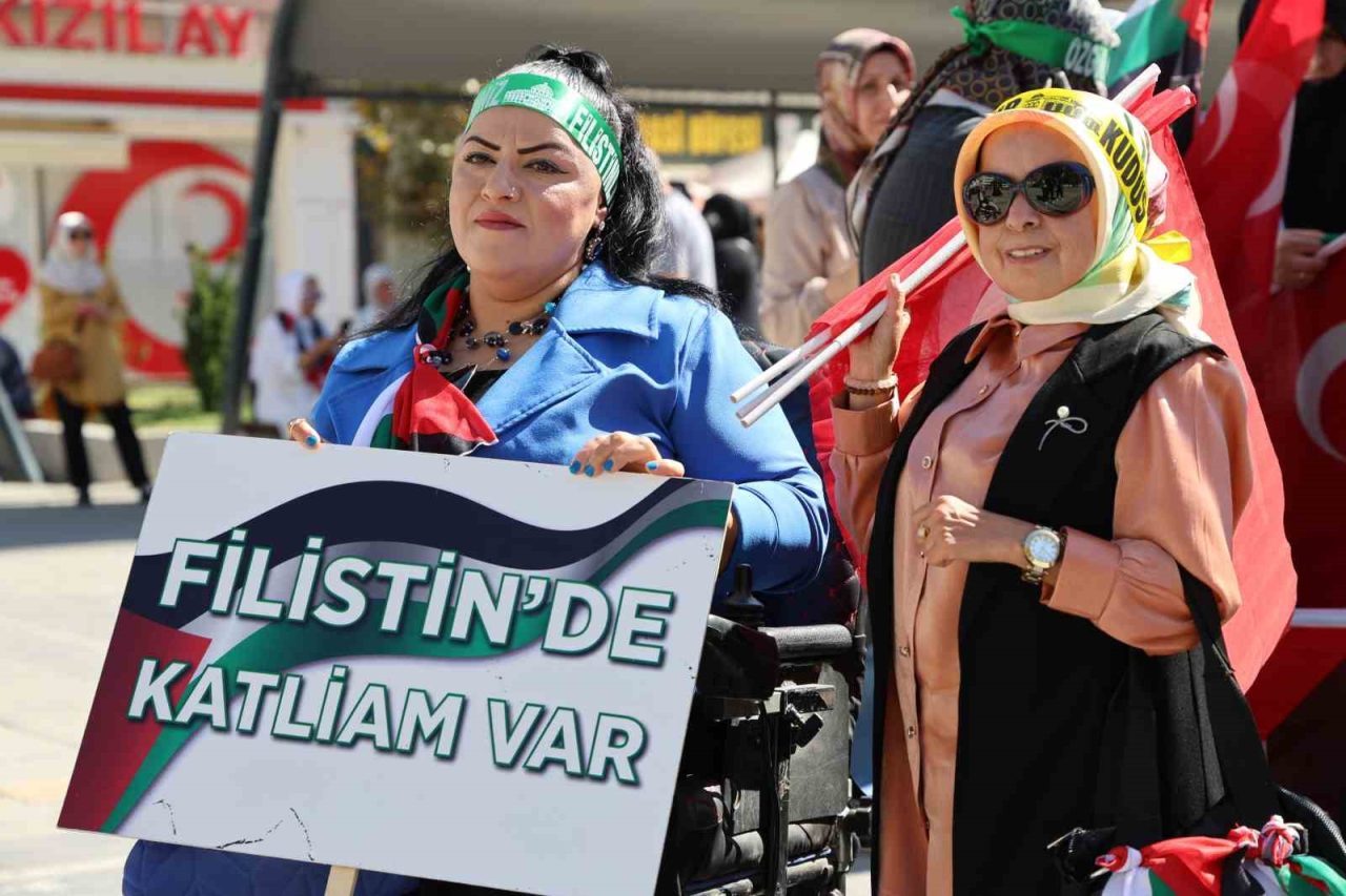 AK PARTİ ELAZIĞ KADIN KOLLARI, GAZZE’YE DESTEK İÇİN 15 TEMMUZ DEMOKRASİ MEYDANI’NDA “GAZZE İÇİN SESSİZ ÇIĞLIK” ETKİNLİĞİ DÜZENLEDİ. KADINLAR, “KATİL İSRAİL” VE “ÖZGÜR FİLİSTİN” DÖVİZLERİ TAŞIDI