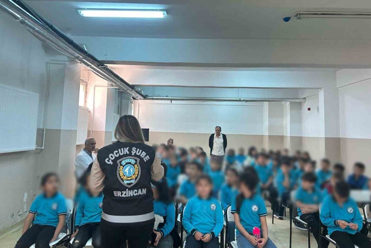 Erzincan’da polis ekiplerince, kent merkezinde bulunan okullarda kişisel güvenlik ve suçtan korunma yöntemleri, güvenli internet kullanımı, trafik güvenliği ile çocuk polisinin görevleri konularında bilgilendirme yapıldı.
