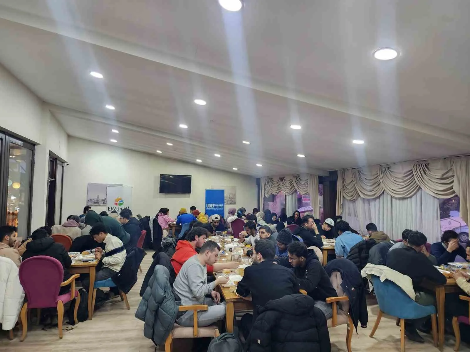 RAMAZAN AYININ MANEVİ İKLİMİNİN HER YERİ SARDIĞI BU GÜNLERDE ERZURUM’DA OKUYAN ULUSLARARASI ÖĞRENCİLER İFTAR SOFRASINDA BİR ARAYA GELDİLER.