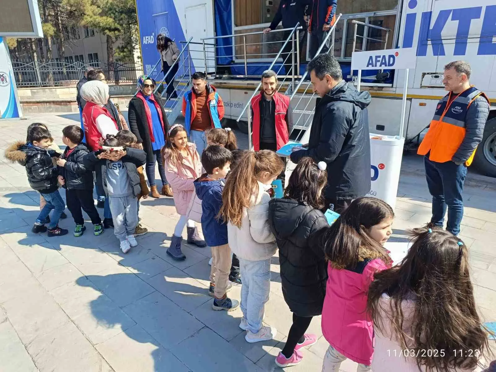 Erzincan AFAD İl Müdürlüğü eğitmenleri, ilk 72 saatin önemi, farklı afet türleri, afetlerin etkileri, yaşanılan mekânlarda risklerin azaltılması ve afet anında doğru davranış biçimleri gibi hayati konularda bilgilendirmelerde bulundu. Deprem simülasyon tırında öğrencilere deprem anı ve deprem sırasında yapılması gerekenler uygulamalı olarak anlatıldı. Simülasyon tırında öğrencilere birebir deprem deneyimi yaşatılarak, doğru reflekslerin nasıl geliştirilmesi gerektiği gösterildi.