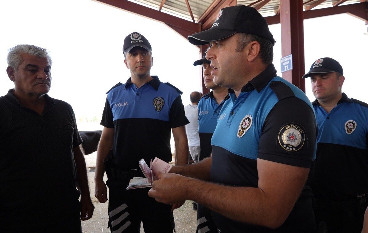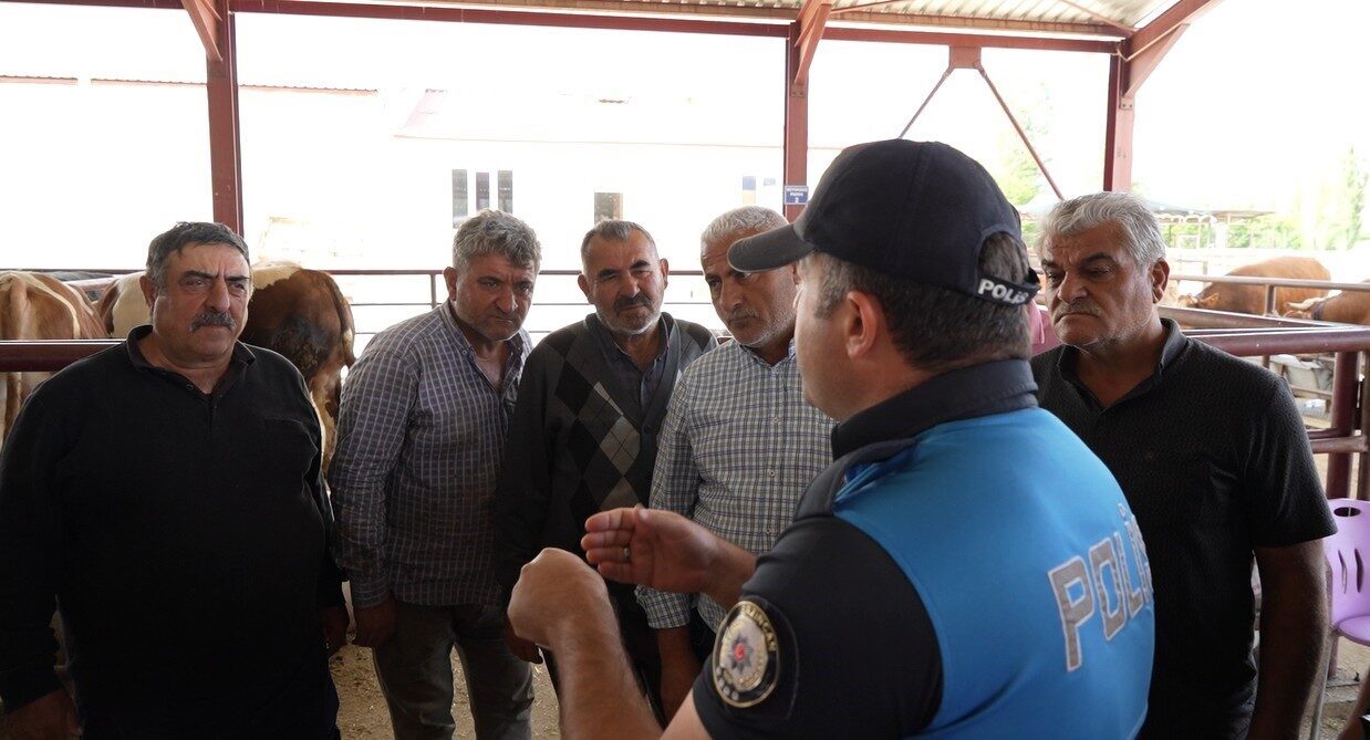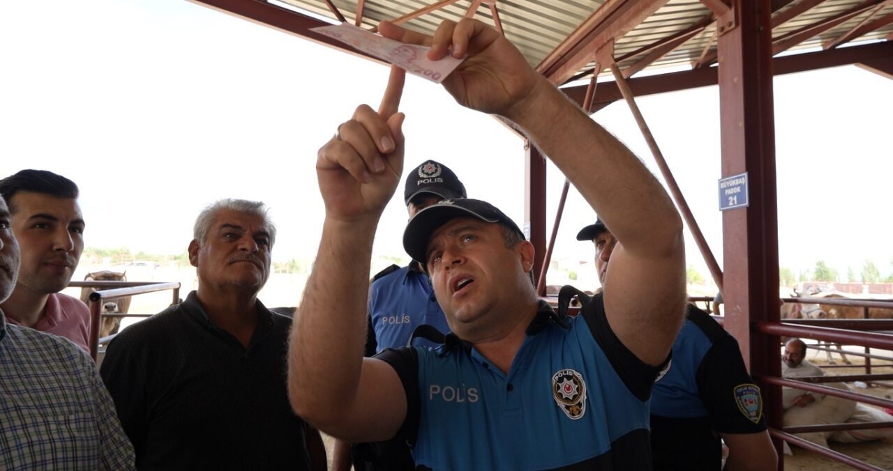 Erzincan’da polis ekipleri, yaklaşan Kurban Bayramı dolayısıyla yoğunluğun yaşandığı hayvan pazarlarında satıcıları sahte para konusunda bilgilendirerek broşür dağıttı.