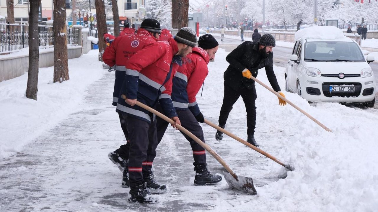 Erzincan’da etkili olan kar yağışı nedeniyle Erzincan Belediyesi ekipleri, şehir genelinde kar küreme ve tuzlama çalışmalarını sürdürüyor.