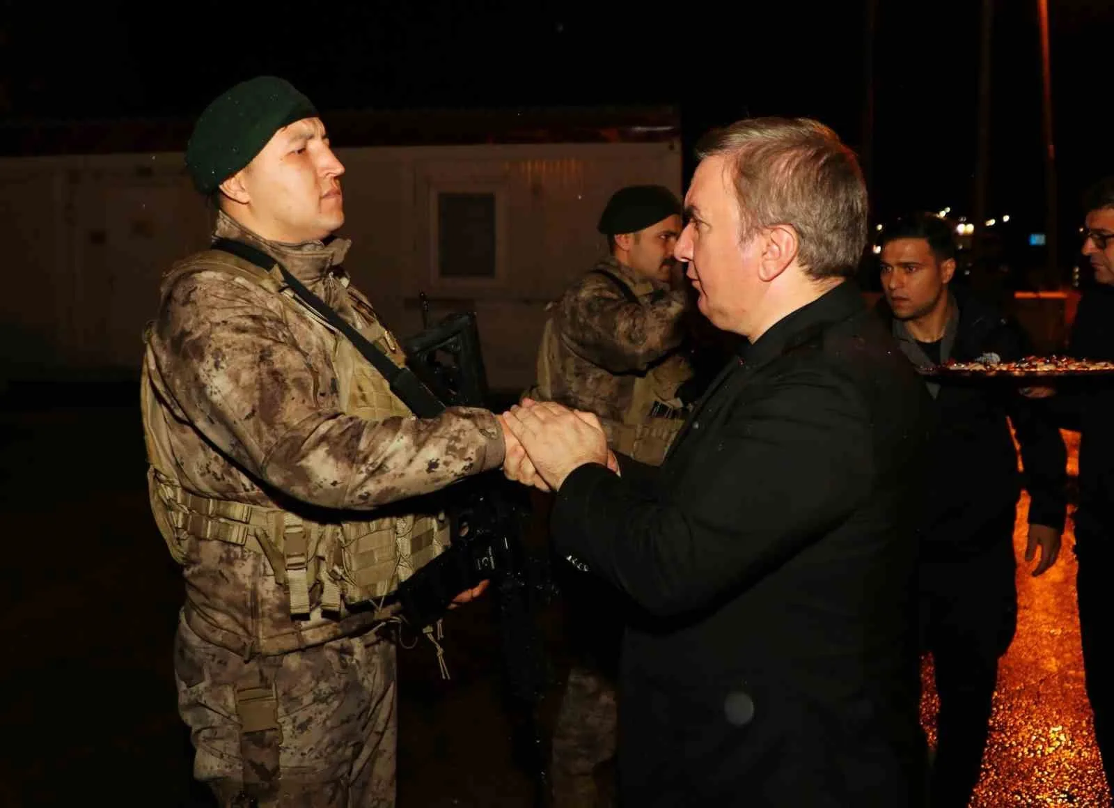 Erzincan Valisi Hamza Aydoğdu, yol kontrol noktalarını ziyaret ederek sürücülere şeker ikramında bulundu.