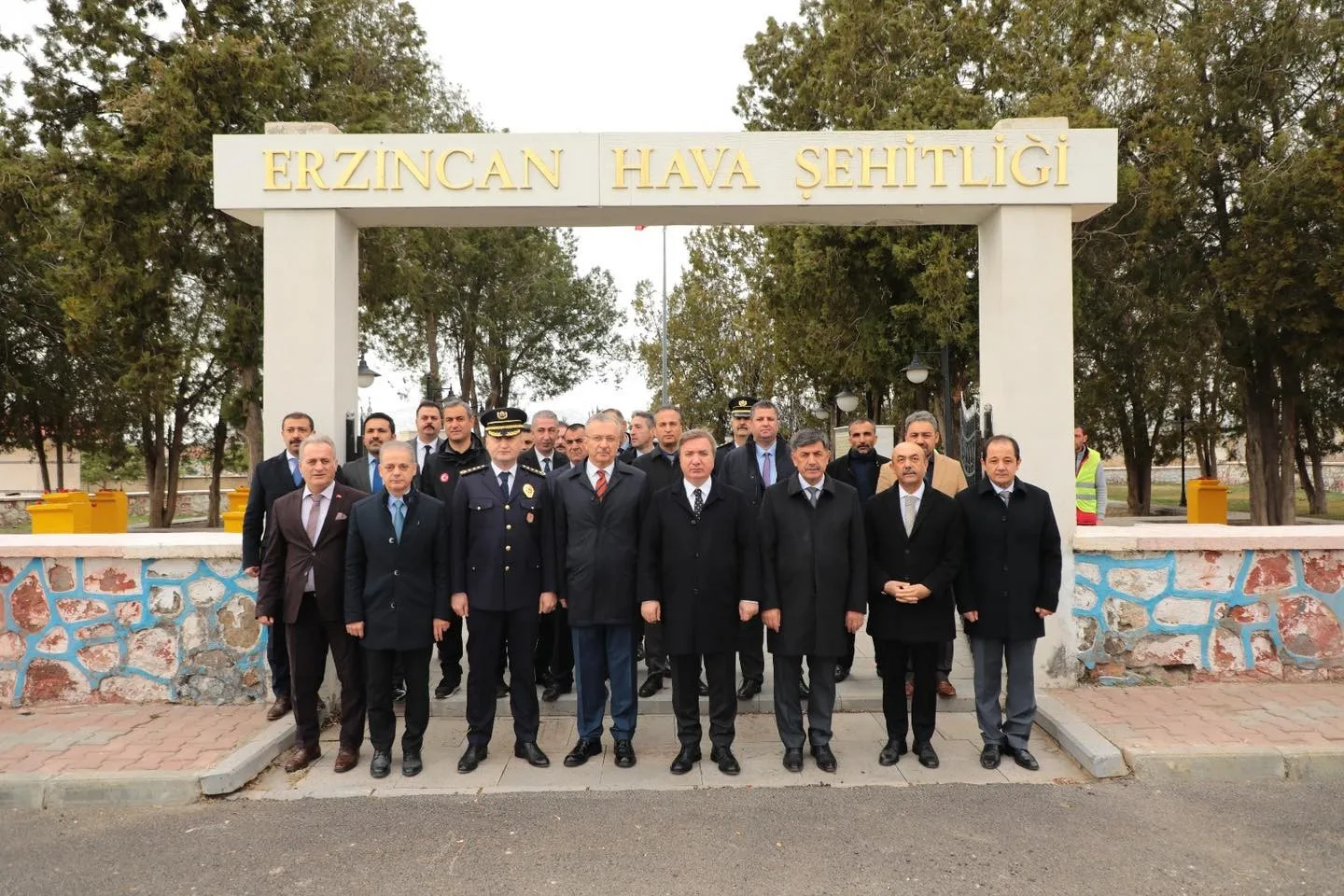 İlk olarak Garnizon Şehitliğinde başlayan törende Erzincan Valiliği, 3. Ordu Komutanlığı, Erzincan Belediyesi ve Erzincan Şehit Aileleri Derneği çelenklerinin sunumunun ardından saygı duruşunda bulunularak, İstiklal Marşı okundu ve saygı atışı yapıldı. Şehitler için Kur’an-ı Kerim okunarak dualar edilmesinin ardından Erzincan Valisi Hamza Aydoğdu, Şehitlik Şeref Defterini imzalayarak bir konuşma yaptı.