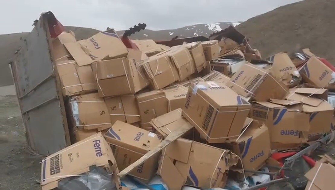 ERZİNCAN’DA BEYAZ EŞYA YÜKLÜ TIR DEVRİLDİ