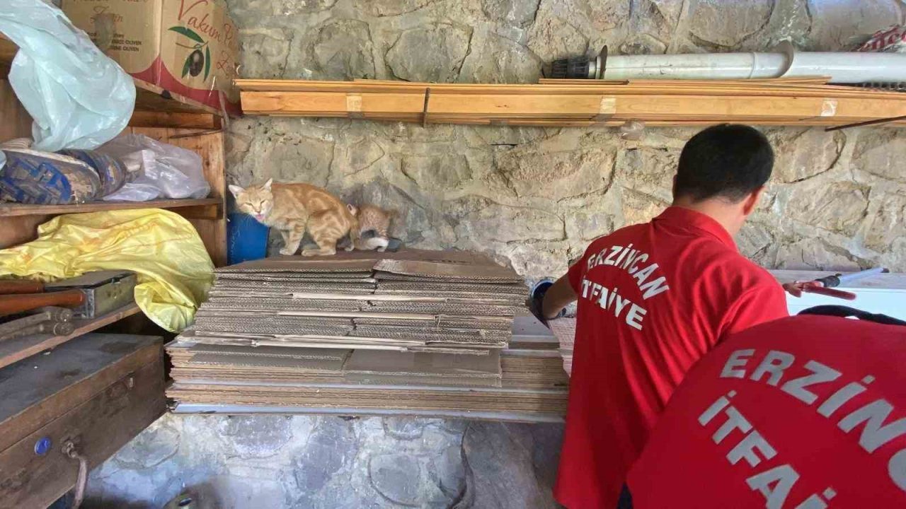 ERZİNCAN’DA BORUYA SIKIŞAN YAVRU KEDİYİ İTFAİYE KURTARDI
