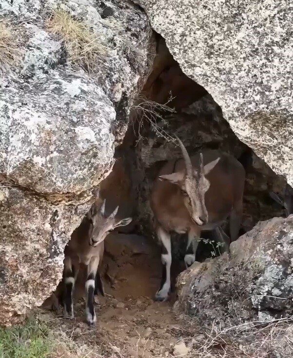 Yaban hayatı açısından zengin bir potansiyele sahip olan Erzincan’da dağlık alanda kaydedilen görüntülerde, 3 dağ keçisinin sarp kayalıklar arasındaki küçük bir kovukta bir süre çevreyi izlediği görüldü.