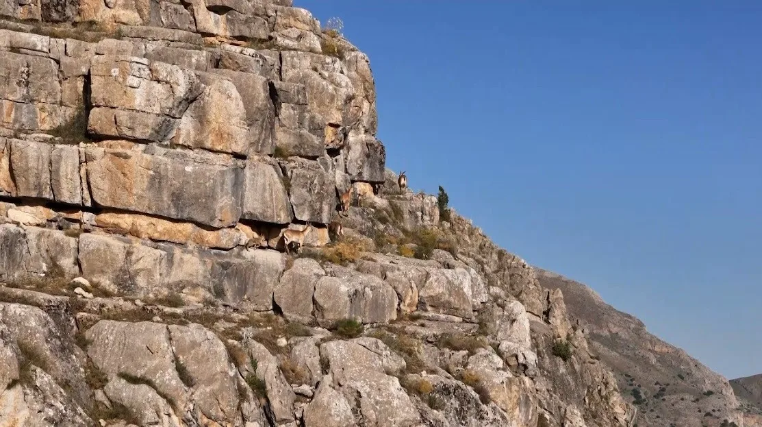 DAĞLAR VE PLATOLARLA KAPLI ERZİNCAN’DA KANYONLARI ÇEVRELEYEN KAYALIKLARLA BÜTÜNLEŞEN YABAN KEÇİLERİ GÖRSEL ŞÖLEN SUNUYOR