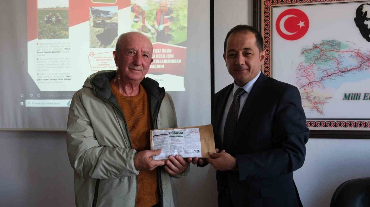 Seracılara yönelik feromon dağıtım törenine katılan Erzincan Tarım ve Orman İl Müdürü Alper Koçaker, pestisitlerle mücadelenin ve gıda güvenliğinin önemine değindi. Erzincan’da seracılık sektörünün her geçen gün büyüdüğüne dikkat çeken Koçaker; “2025 yılında Gıda ve Kontrol Genel Müdürlüğü Bitki sağlığı Uygulamaları ve Kontrolü Projesi Bütçesinden Proje tutarı 600 bin TL olan yüzde 50 çiftçi katkılı Domates Güvesi İle Biyoteknik Mücadele Projesi kapsamında 120 dekar sera alanında kullanılmak üzere 20 çiftçimize 3 bin 600 adet Feromon yayıcı kapsül dağıtımı yapıyoruz. Bugüne kadar İl Müdürlüğümüz tarafından son 3 yılda toplam 67 çiftçimize 275 dönüm serada kullanılmak üzere 8 bin 250 adet Feromon yayıcı kapsül dağıtımı gerçekleştirdik. Elbette domates güvesine karşı verdiğimiz savaşta bu feromon yayıcı kapsüller büyük fayda sağlıyor. Ekiplerimiz oluşturulan proje ile hem seracılarımızın ihtiyaç duyduğu feromon yayıcı kapsülleri dağıtıyor hem de bunların kullanımı ve dikkat edilecek hususlar konusunda seracılarımızı bilgilendiriyor” diye konuştu.