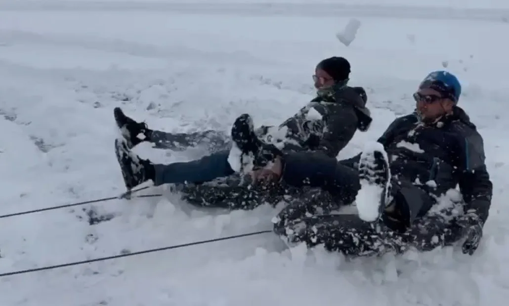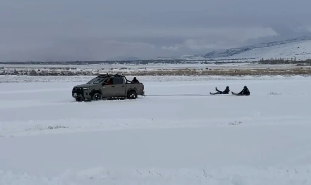 Erzincan’da yoğun kar yağışının ardından 4X4 araçla yüksek kesimlere çıkan arkadaş grubu karın tadını çıkardı. Aracın arkasına bağladıkları şambrel ile kaymaya başlayan gençler, hızlı ve keyifli anlar yaşadı. Eğlenceli anlarını cep telefonlarıyla kaydeden gençler, sosyal medyalarında paylaşırken ilgi gördüler.