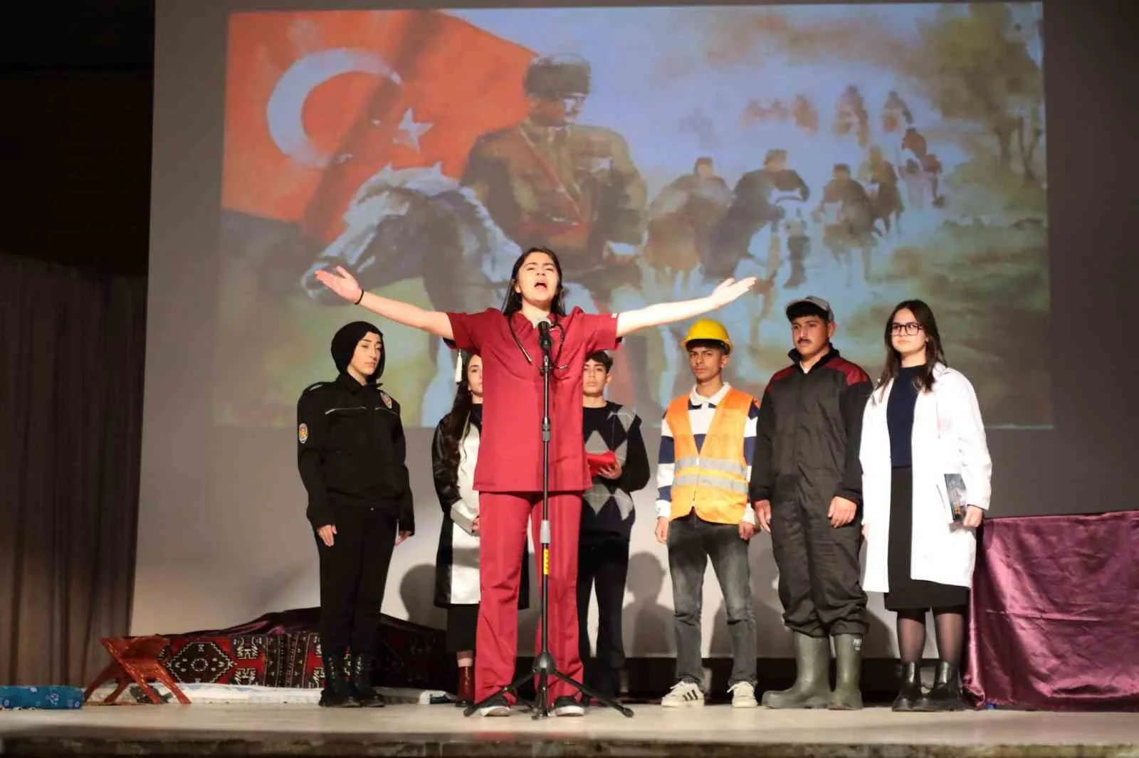Erzincan Müftülük Konferans salonunda düzenlenen program saygı duruşunda bulunulması ve İstiklal Marşı’nın okunması ile başladı. Programda öğrenciler tarafından İstiklal Marşı tiyatro oyunu sergilendi.