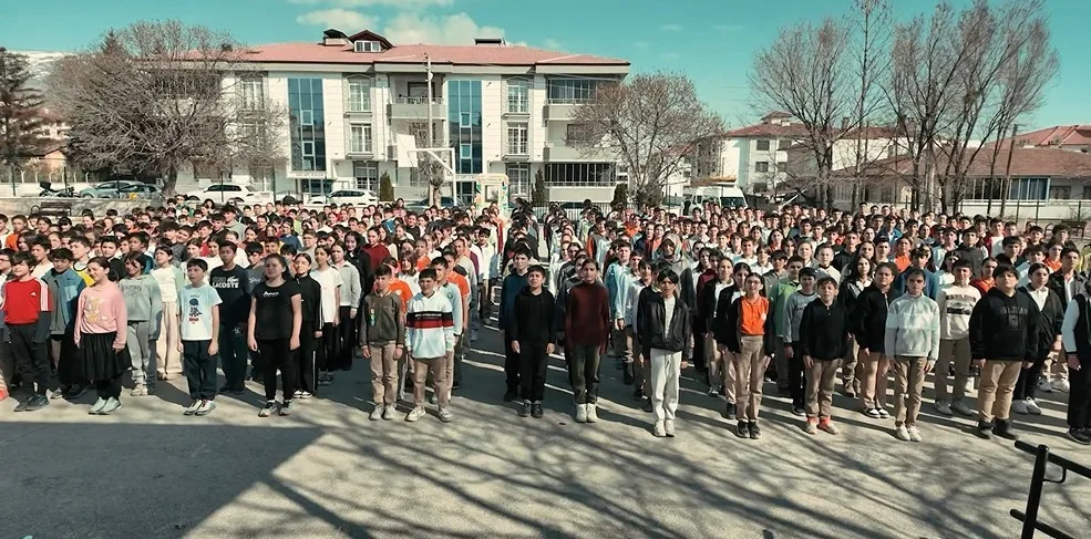 Erzincan’da Mehmetçik Ortaokulu öğrencileri İstiklal Marşı’nın kabulünün 104. yıl dönümünde anlamlı bir etkinliğe imza attı.