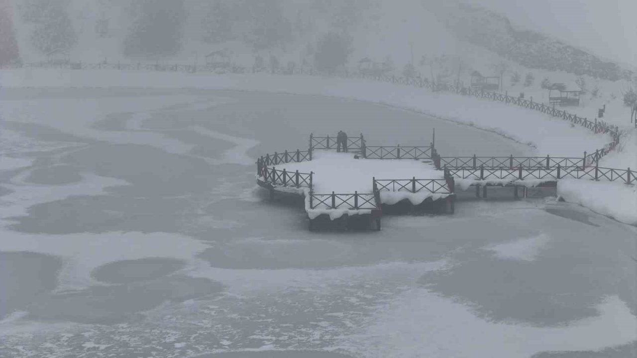 Derinliği yaklaşık 5 metre olan ve yüzeyi buzla kaplanan gölü görmeye gelen ziyaretçiler, ortaya çıkan manzaranın seyrine doyumsuz olduğunu belirtti. Buzla kaplanan göl ve çevresi, Erzincan’da kışın oluşturduğu doğal güzellikleri bir kez daha gözler önüne serdi.
