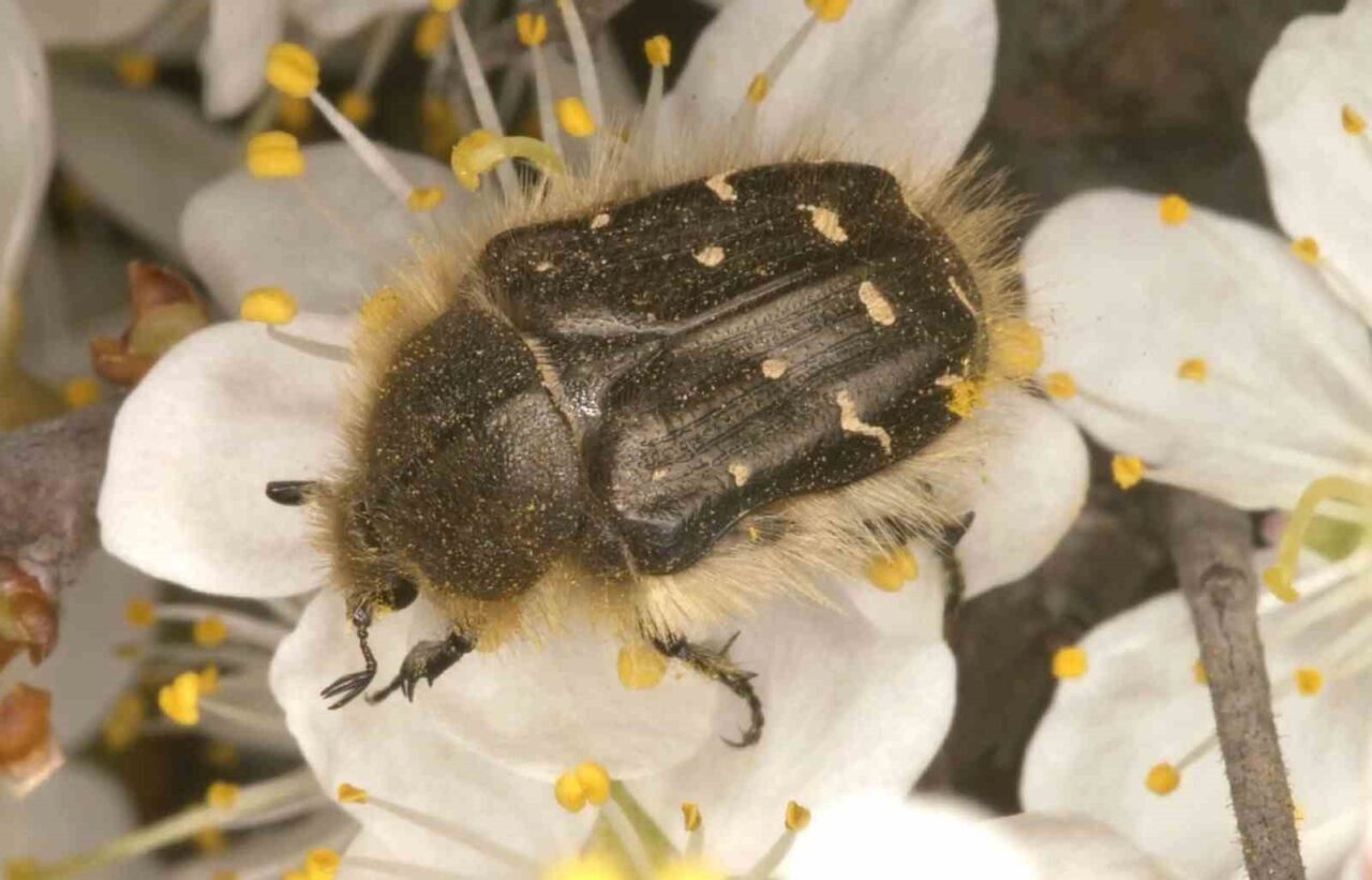 “Çiçek tomurcuklarını ve meyvelerini yiyerek zarar yapan bu zararlılar ile zorunlu olmadıkça kimyasal mücadele tavsiye edilmiyor. Baklazınnı ile mücadelede kültürel önlemler önem kazanıyor. Baklazınnı erginleri, yaklaşık 10 mm boyda ve siyah mat renklidir. Vücudunun üzeri sık ve oldukça uzun sarı tüylerle kaplıdır. Kın kanatların üzerinde beyaz lekeler bulunur. Kışı ergin döneminde toprakta geçirir. İlkbaharda, meyve ağaçlarının ve diğer bitkilerin çiçek açtıkları zaman çıkan erginler, daha çok çiçeklerle beslenirler.