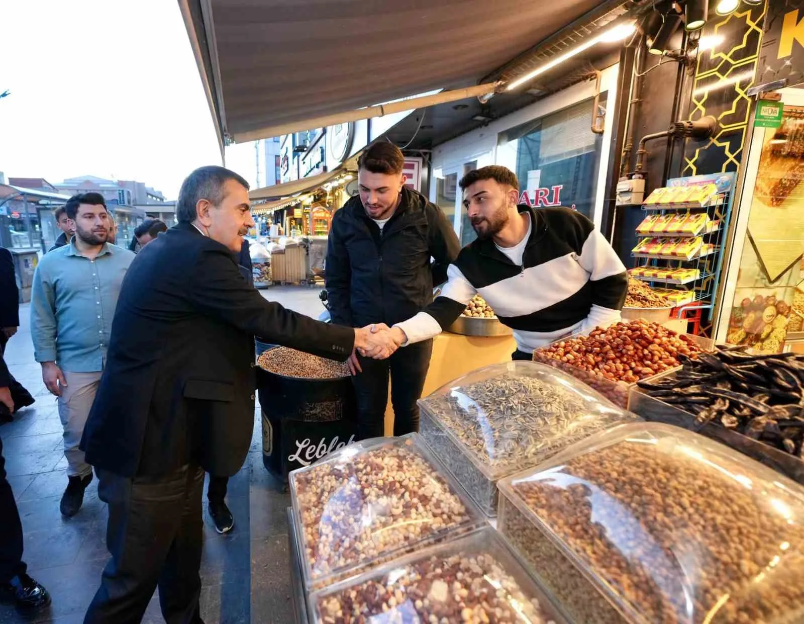 Bakan Tekin, daha sonra Belediye Başkanlığını ve esnafı ziyaret etti.