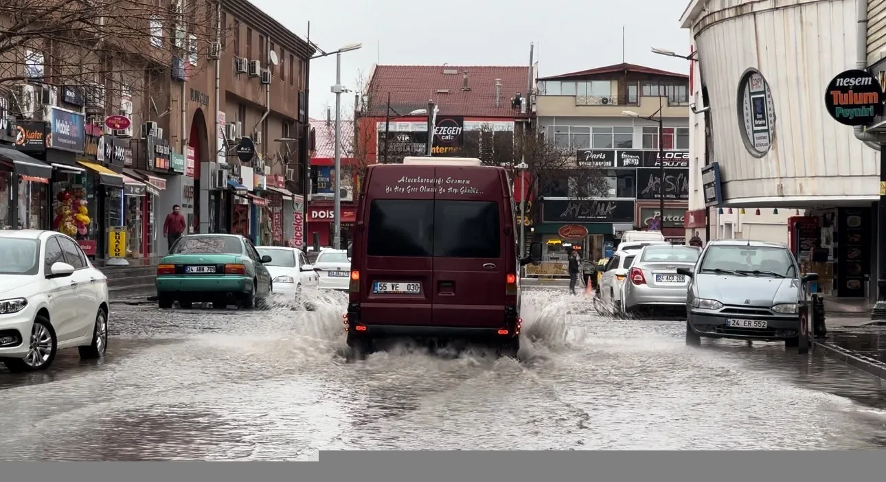 Erzincan’da gün içerisinde etkisini gösteren sağanak yağmur hayatı olumsuz etkiledi. Araç yoğunluğunun çok olduğu İnönü Mahallesi 6. sokakta su birikintisi oluştu.