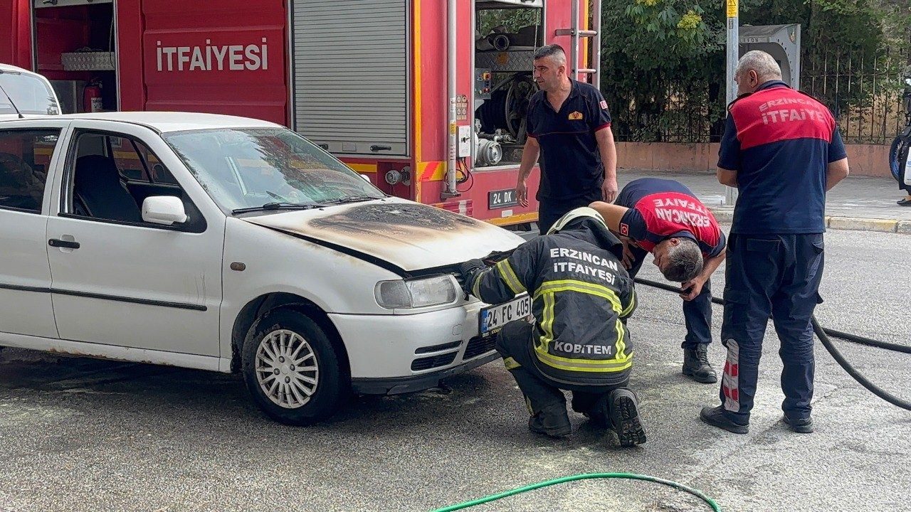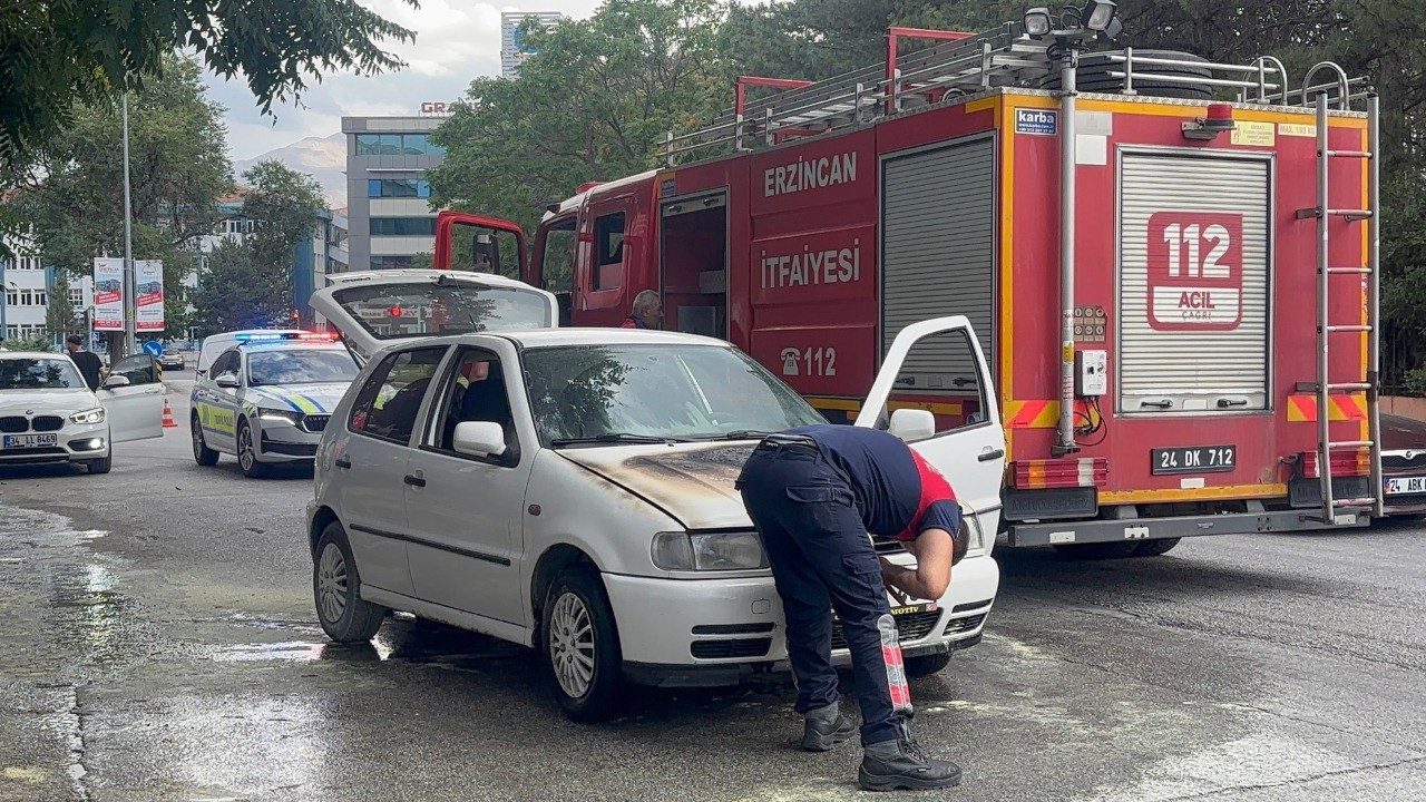 Erzincan’da seyir halindeyken ön kısmından alev alan otomobil itfaiye ekiplerince söndürüldü.