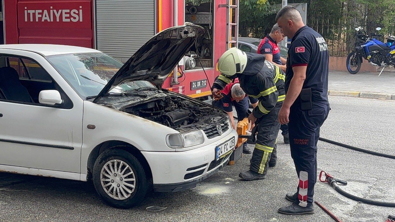 ERZİNCAN’DA SEYİR HALİNDEYKEN ÖN KISMINDAN ALEV ALAN OTOMOBİL İTFAİYE EKİPLERİNCE SÖNDÜRÜLDÜ