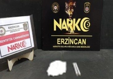 Erzincan İl Emniyet Müdürlüğü Narkotik Suçlarla Mücadele Şube Müdürlüğü ekiplerince uyuşturucu madde ticareti yapan ve kullanan şahıslara yönelik operasyon düzenlendi. Operasyonda 2,21 gram sentetik Cannabinoid (Bonzai), 1,57 gram peçeteye emdirilmiş sentetik Cannabinoid (Bonzai), 1,39 gram Metamfetamin, 1 adet içime hazır uç yapılmış sigara, 2 adet cam aparat (pipe) ele geçirildi.