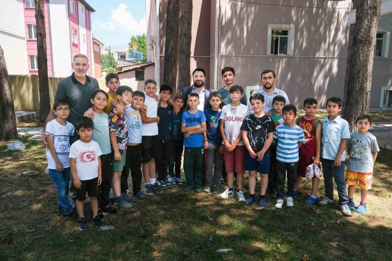 Erzincan İl Müftüsü İsmail Fakirullahoğlu, Halitpaşa Kardeşler Camii’nde devam eden yaz Kur’an kursunda öğrenim gören öğrencileri ziyaret ederek, çocuklarla bir araya geldi.