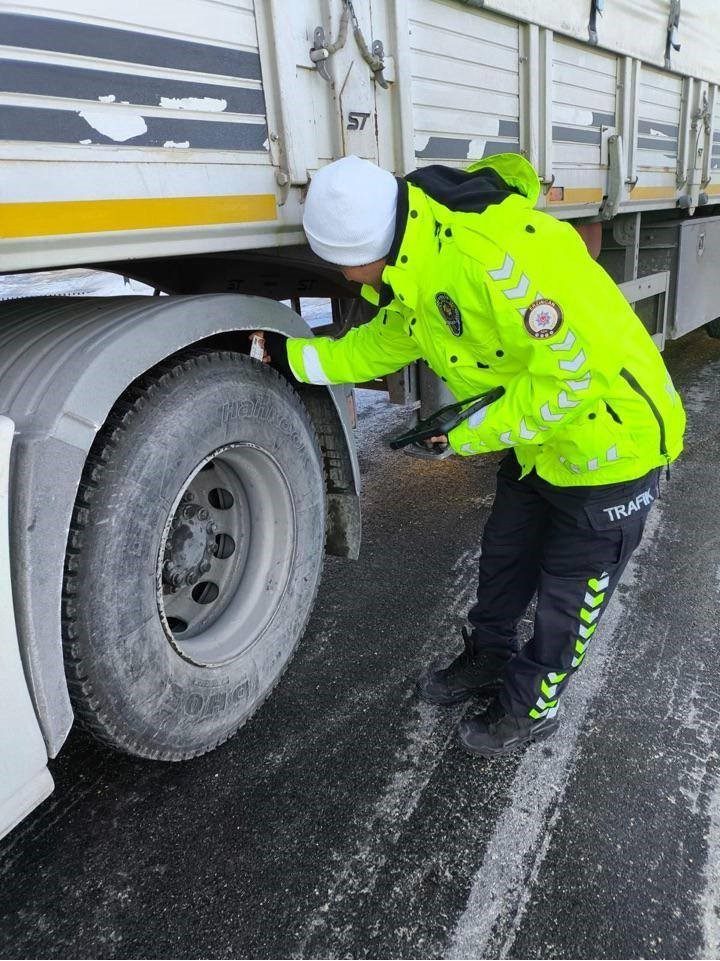 Yapılan kontrollerde toplam 154 araç incelendi. Denetimler sonucunda, 3 araca “Yolcu ve eşya taşımalarında kullanılan araçlarda yılın zorunlu tutulan dönemlerinde kış lastiği kullanmamak” maddesi (65/A) kapsamında cezai işlem uygulandı.