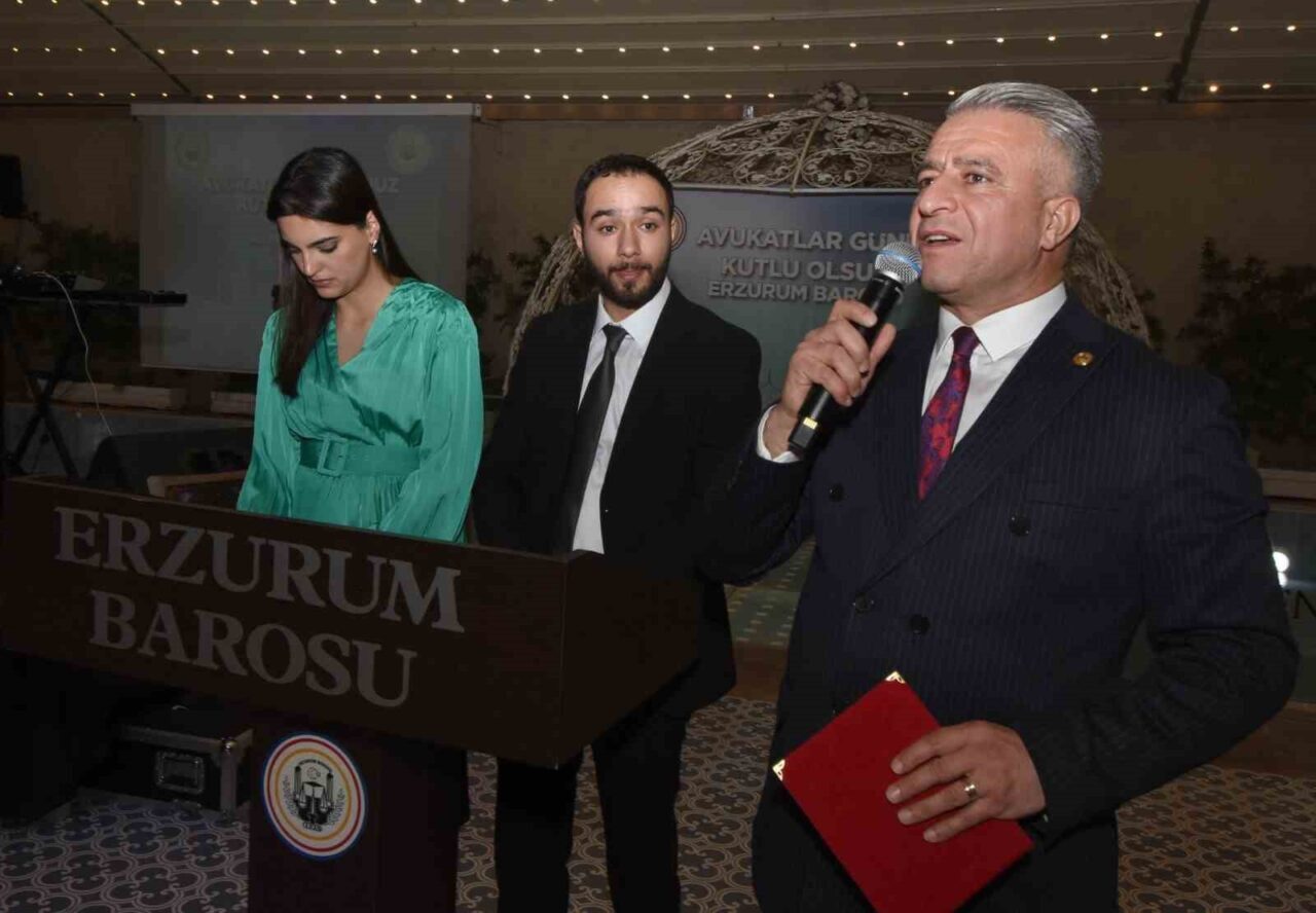 Cumhuriyet Başsavcısı Adem Aydemir ise yaptığı konuşmada, Avukatların, Hukukun üstünlüğünün ve adaletin sağlanmasında hayati bir rol üstlendiğini ifade ederek, “Öncelikle Avukatlar Gününüzü sevgi ve saygı ile kutluyorum. Bir kez daha Erzurum Baromuzun nazik daveti ile bir araya gelmekten memnuniyetimi ifade etmek istiyorum. Hukukun üstünlüğünün tesis edildiği, başta adil yargılanma hakkı olmak üzere hak ve özgürlüklerin güvence altına alındığı bir hukuk düzeni için savunma hakkına ve avukatlık mesleğine saygının gereklerinin yerine getirildiği bir yıl geçirmenizi temenni ediyorum. Bizler hukukçular olarak hukukun üstünlüğü, insan hakları, eşitlik temelinde adaletin her an tecellisi için elimizden gelenin en iyisini ortaya koymakla mükellefiz. Bu milletin ferdi olan bizler milletimizin adalete olan inancı ile daha da güçleneceğiz. Bu duygu ve düşüncelerle başta yargı şehitlerimiz olmak üzere ahirete irtihal eden tüm şehitlerimizi saygı ve minnetle anıyor, çalışmalarınızda üstün başarılar diliyor, Kim için olursa olsun herkes için adalet düsturu ile hepinizi saygı ve sevgiyle selamlıyorum” dedi.