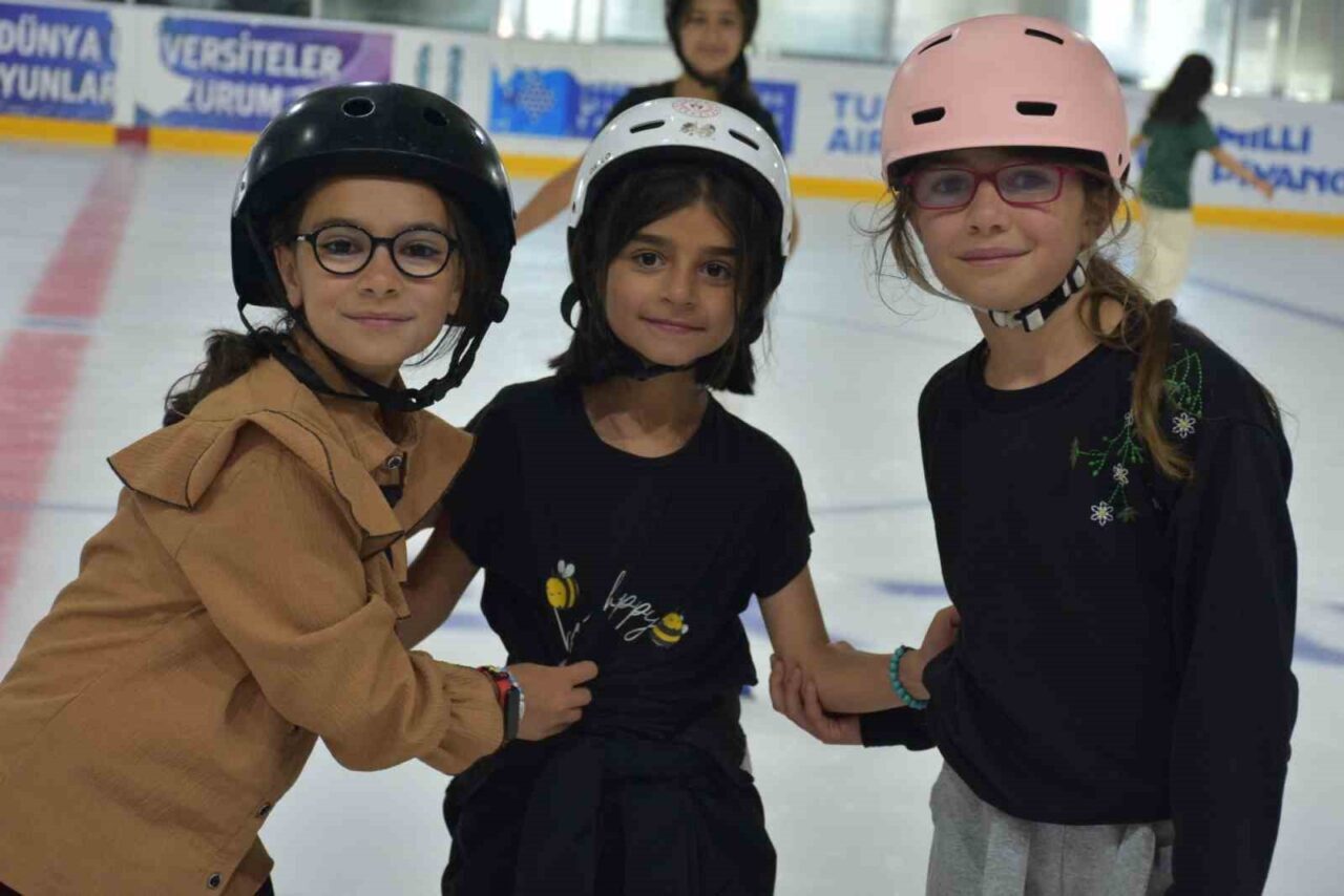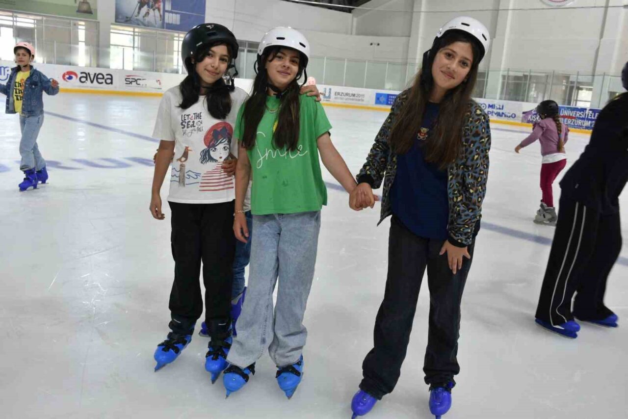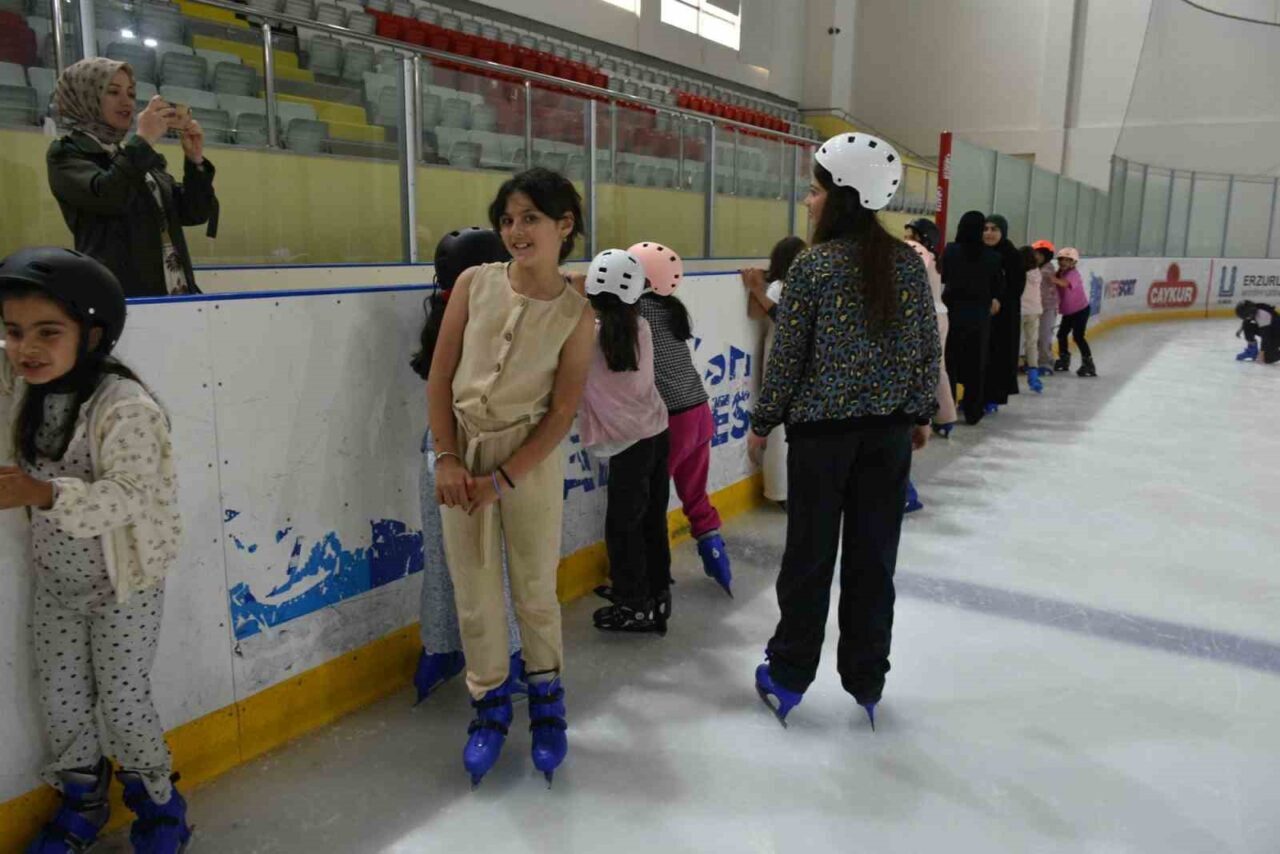 Erzurum Gençlik ve Spor İl Müdürlüğü Yaz Kur’an Kursları’nda Kur’an öğrenen öğrencileri buz pateni ile tanıştırdı.