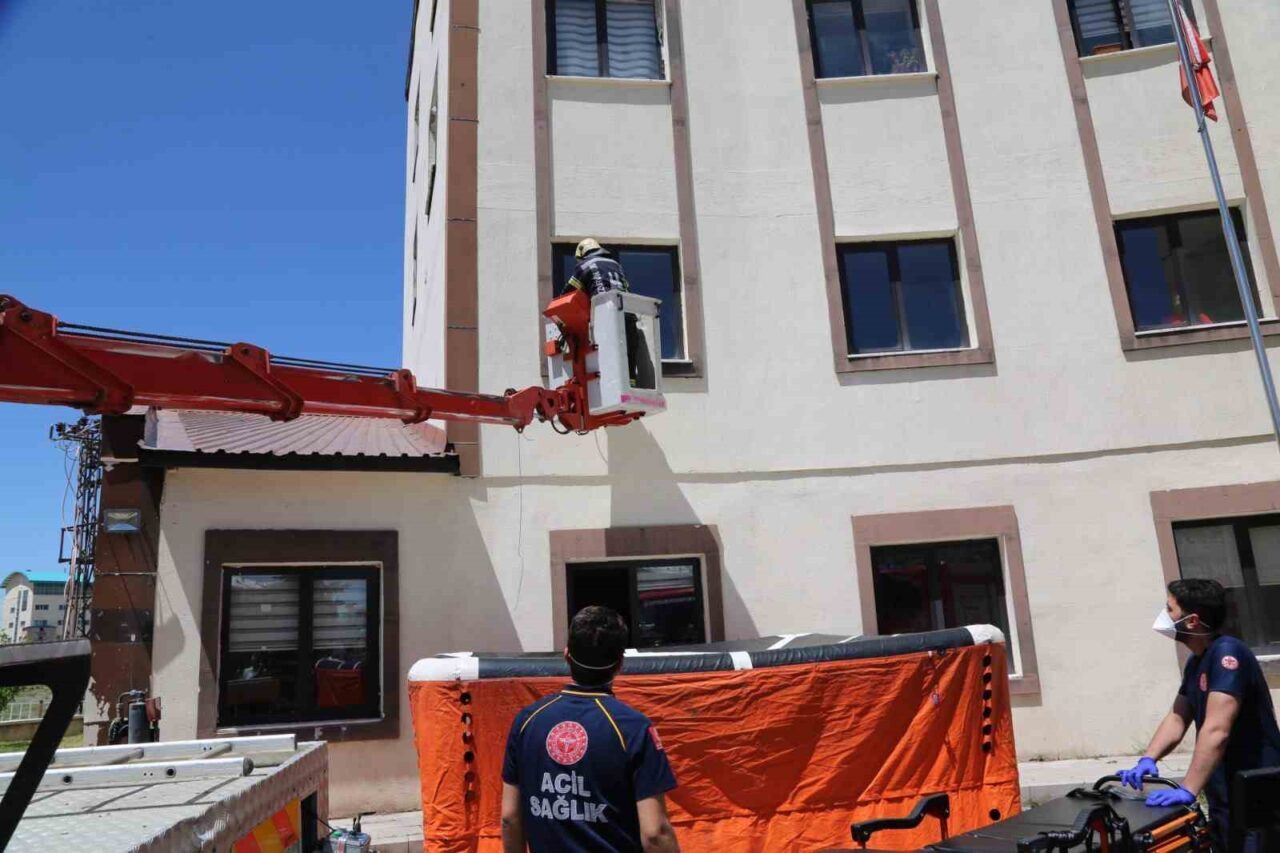 Erzurum Büyükşehir Belediyesi İtfaiye Daire Başkanlığı ekipleri olası bir yangındaki hareket tarzları işle ilgili sağlık personeline eğitim verdi.