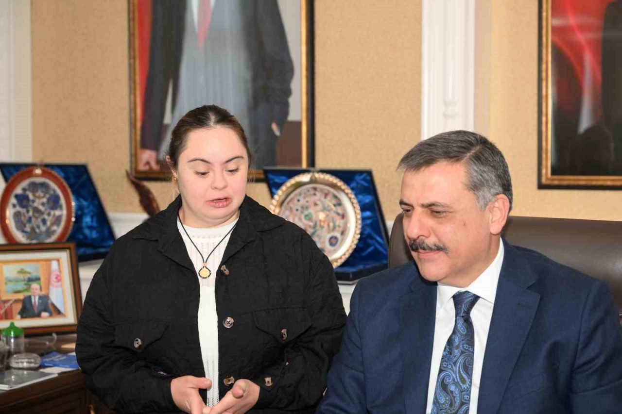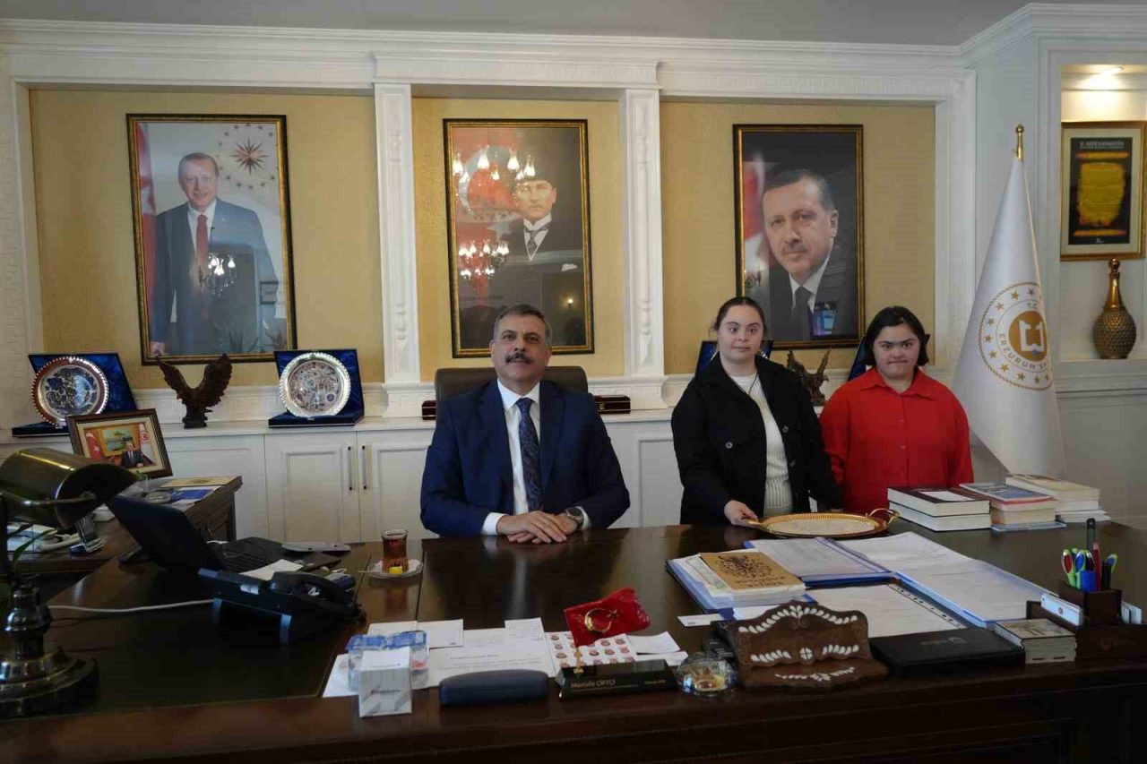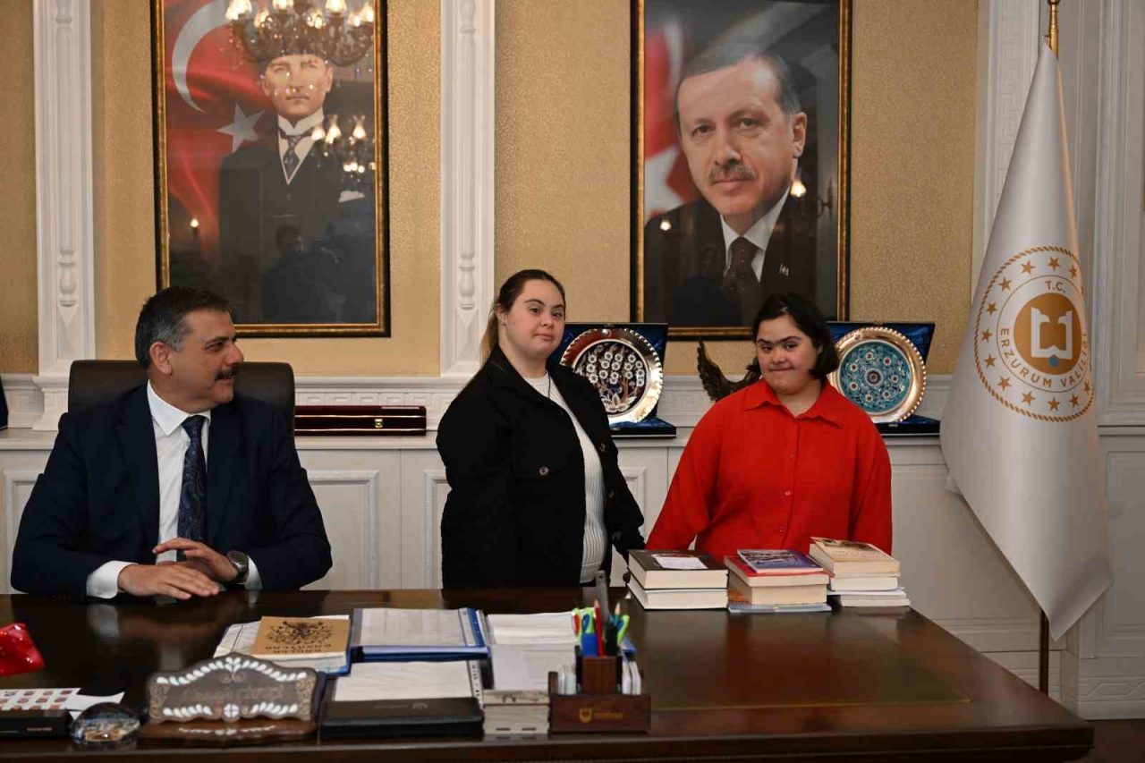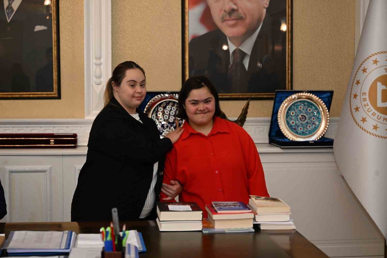 Erzurum Valiliği’nde yürek ısıtan farkındalık uygulaması takdir topladı. Çağla Okyay ve Elif Ademoğlu isimli down sendromlu özel çocuklar, Erzurum Valiliği’nde göreve başladı.