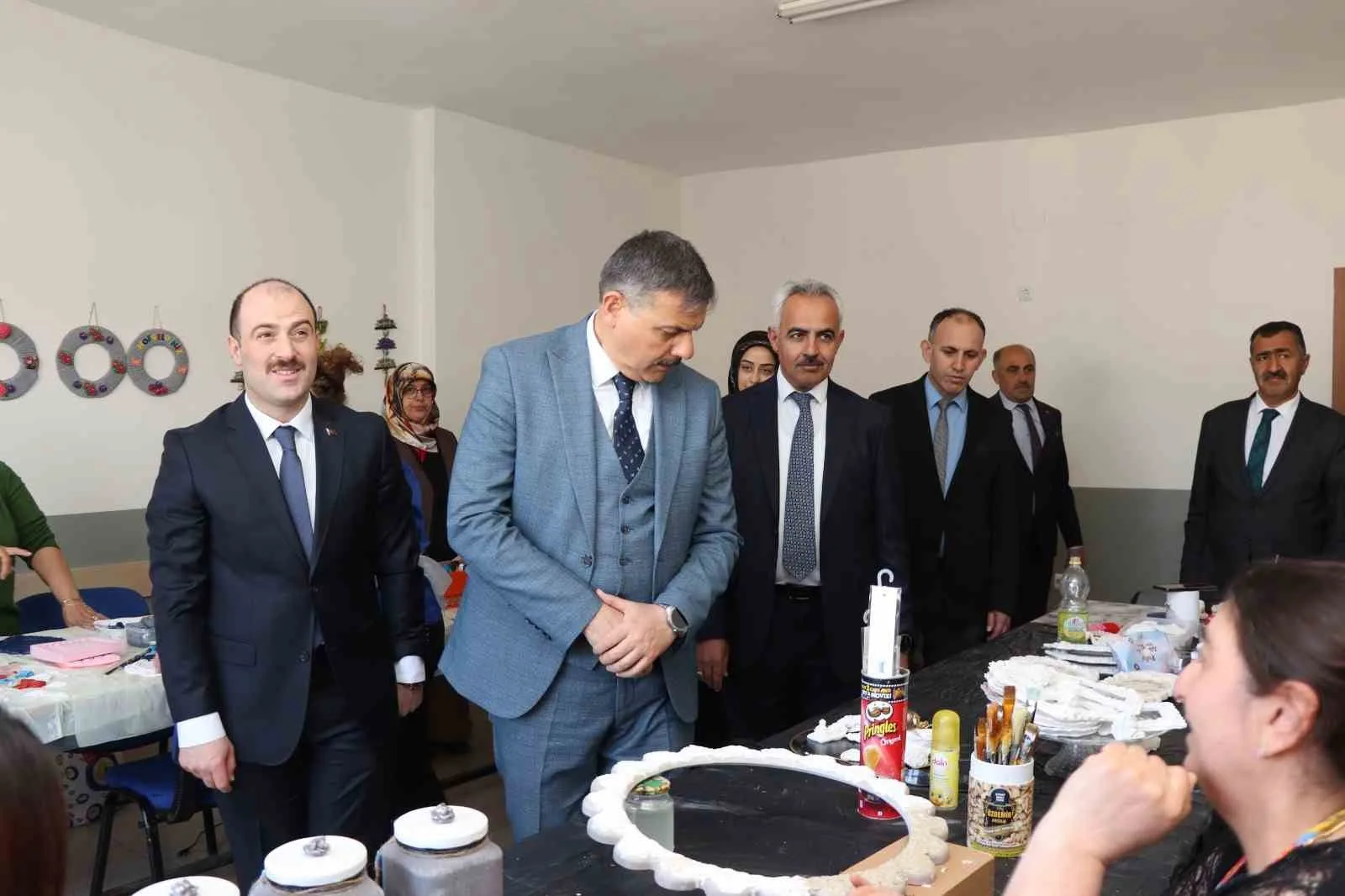 Vali Mustafa Çiftçi, daha sonra Oltu Aile Destek Eğitim Merkezi’ni ziyaret etti. Burada kursiyerlerle bir araya geldi. Kursiyerler Vali Mustafa Çiftçi’ye Türk Bayrağı hediye etti.
