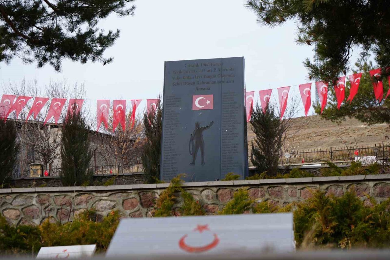 ERZURUM’UN YAKUTİYE İLÇESİNE BAĞLI DUMLU MAHALLESİ’NDE, 7 ARALIK 1966’DA 247. PİYADE ALAYI KOĞUŞU’NDA ÇIKAN YANGINDA ŞEHİT DÜŞEN 65 ASKERİMİZ, VEFATLARININ 59. YILINDA DUALARLA ANILDI.