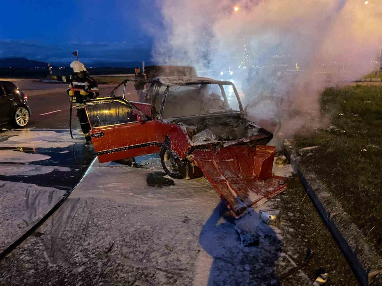 ERZURUM’DA MEYDANA GELEN ARAÇ YANGININA İTFAİYE MÜDAHALE ETTİ AMA ARAÇ KULLANILMAZ HALE GELDİ.