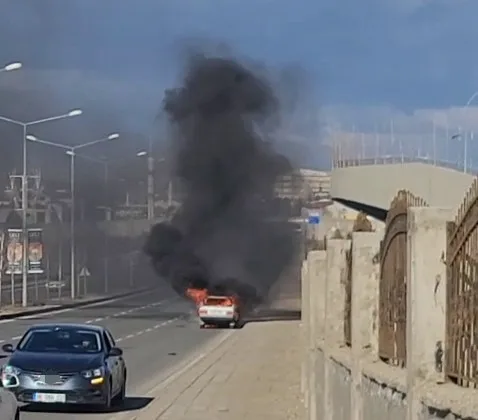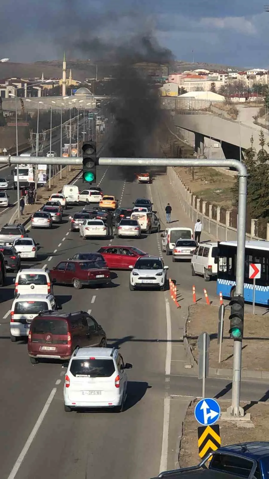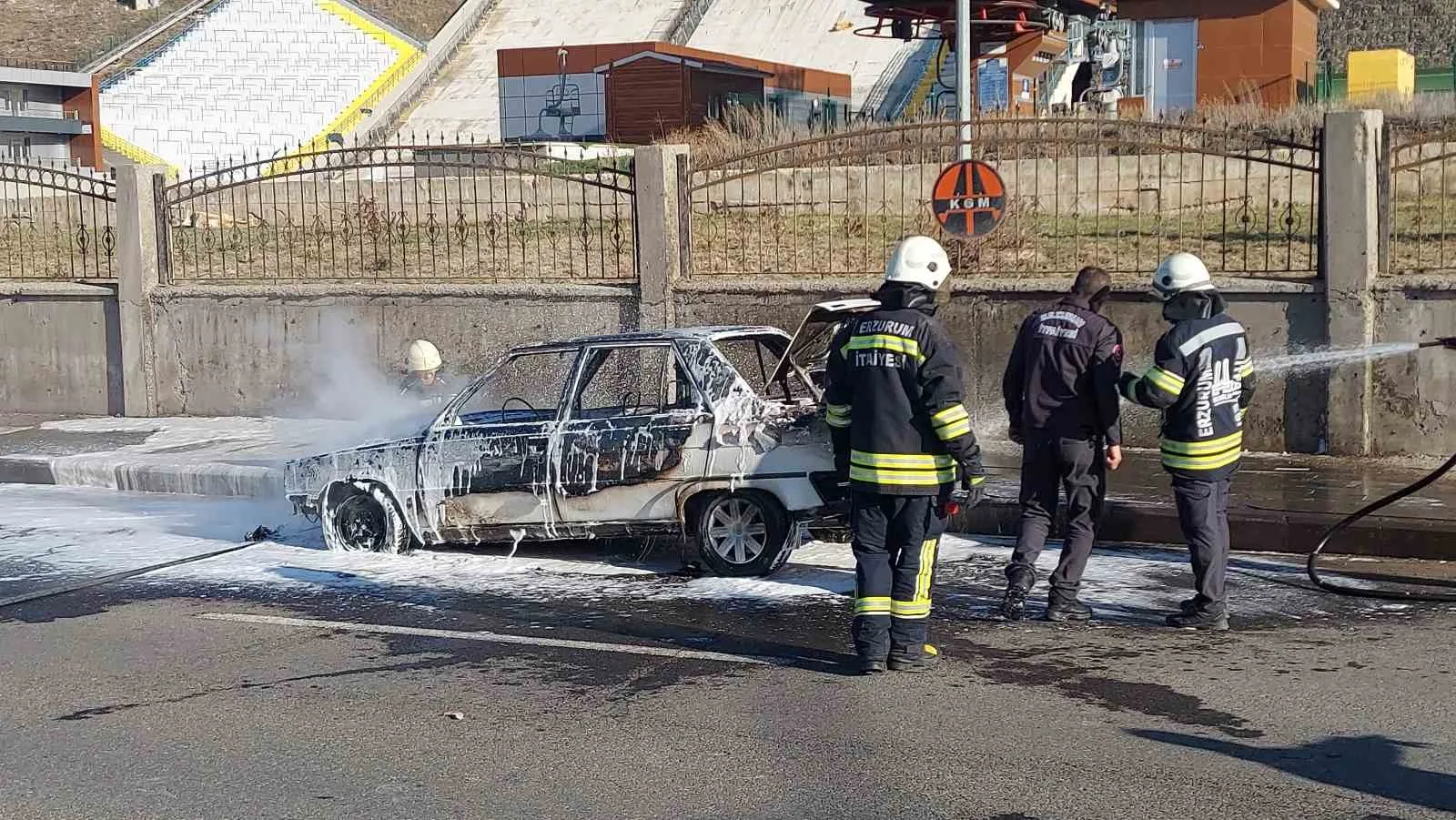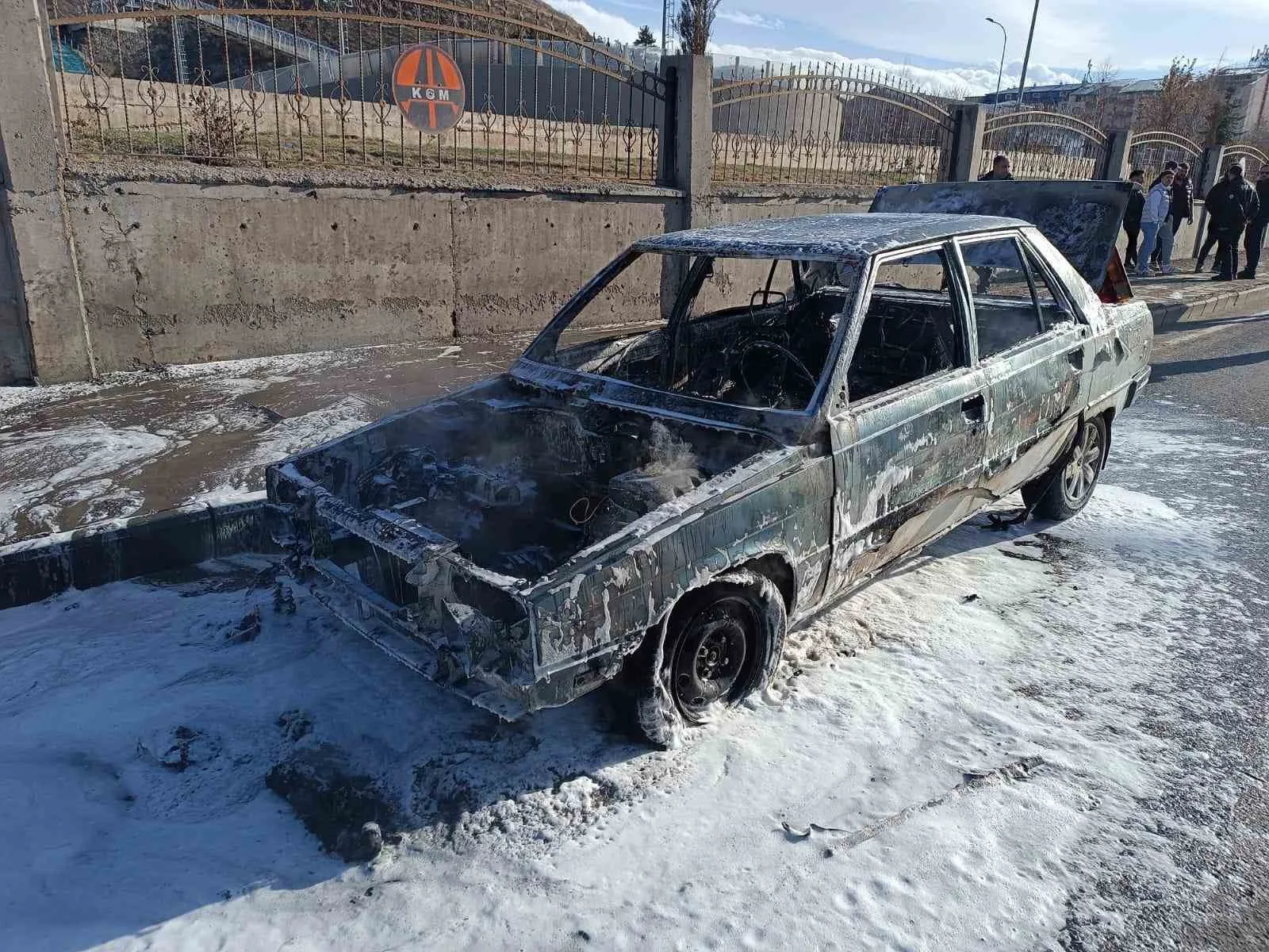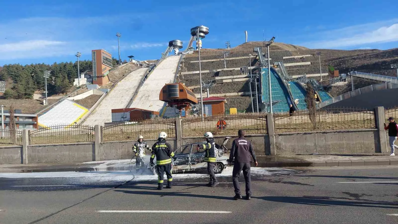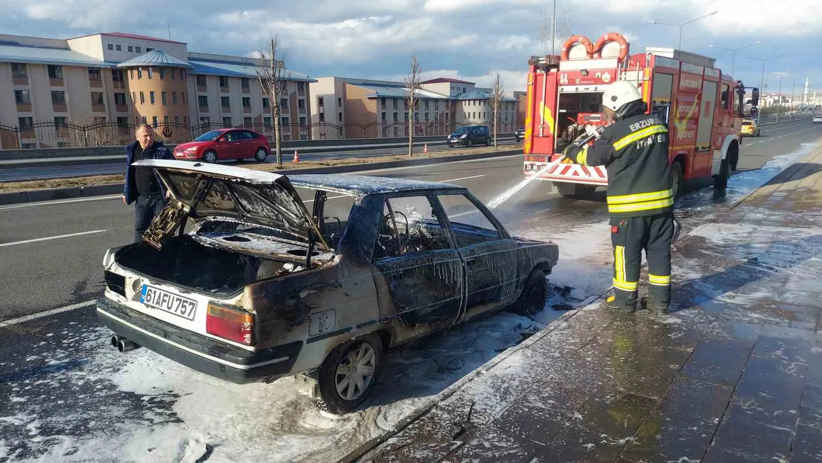 Erzurum’da seyir halindeki araç bir anda alev topuna döndü. Araçtaki 4 kişi son anda çıkarak canlarını kurtardı.