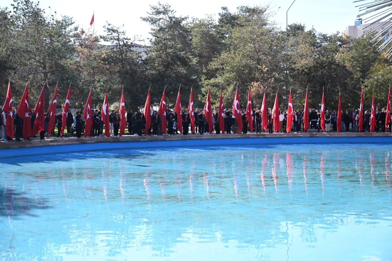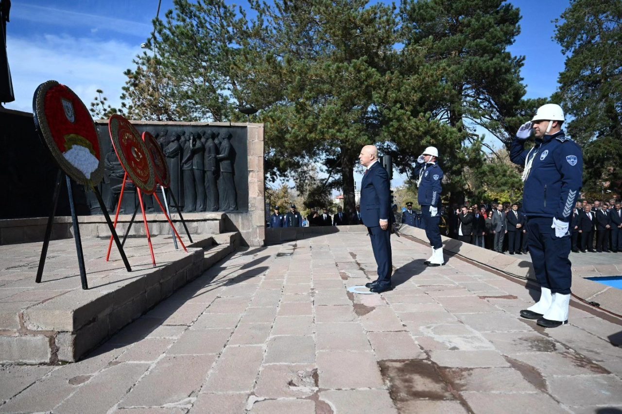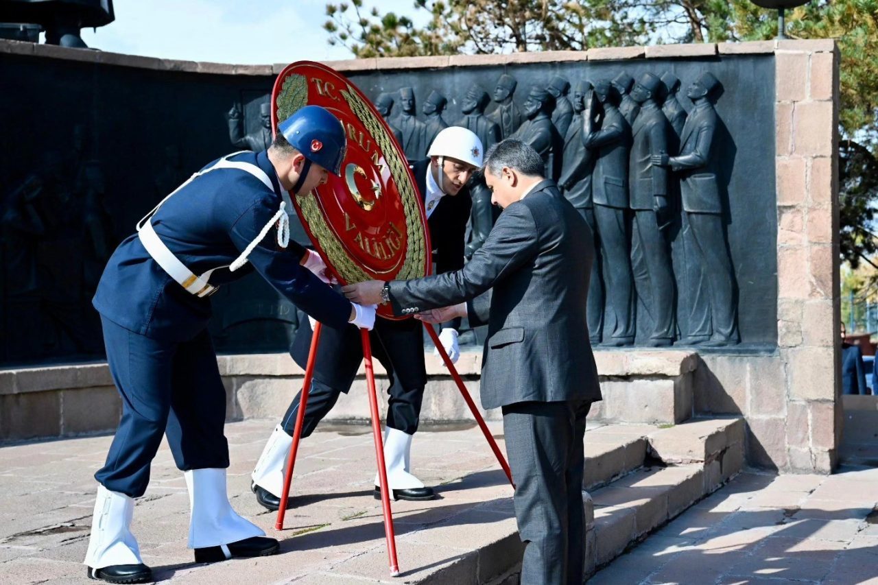 Vali Mustafa Çiftçi, 9’uncu Kolordu ve Garnizon Komutanı Tümgeneral Osman Akyıldız, Büyükşehir Belediye Başkanı Mehmet Sekmen, Havuzbaşı Atatürk Anıtı’na çelenk sundu.