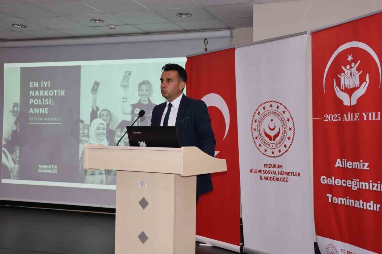 2025 yılının “Aile Yılı” ilan edilmesi kapsamında, Aile ve Sosyal Hizmetler İl Müdürlüğü ile Erzurum İl Emniyet Müdürlüğü iş birliğinde kadınlara yönelik “En İyi Narkotik Polis: Annedir” temalı madde bağımlılığıyla mücadele eğitimi düzenlendi.