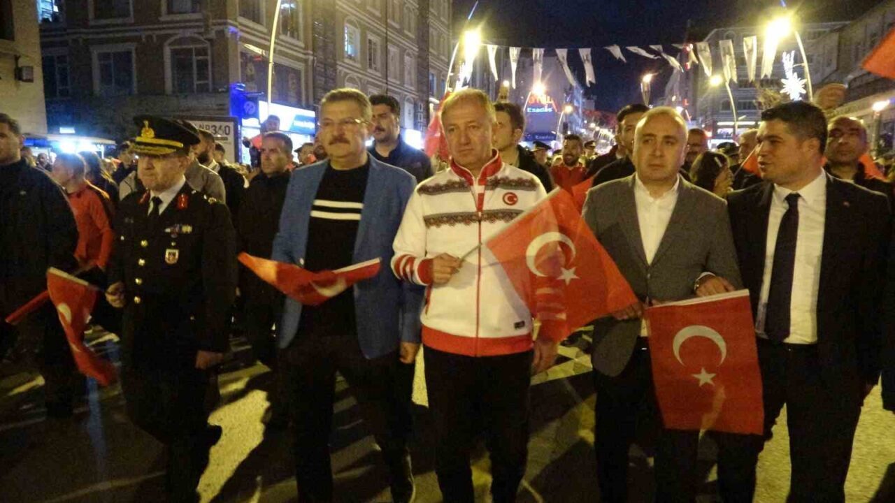 Erzurum’da 19 Mayıs Atatürk’ü Anma, Gençlik ve Spor Bayramı dolayısıyla akşam meşaleli yürüyüş gerçekleştirildi.