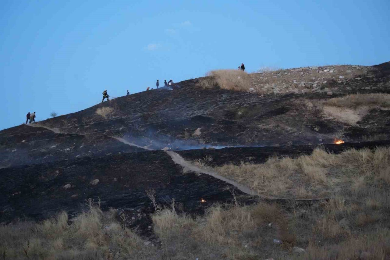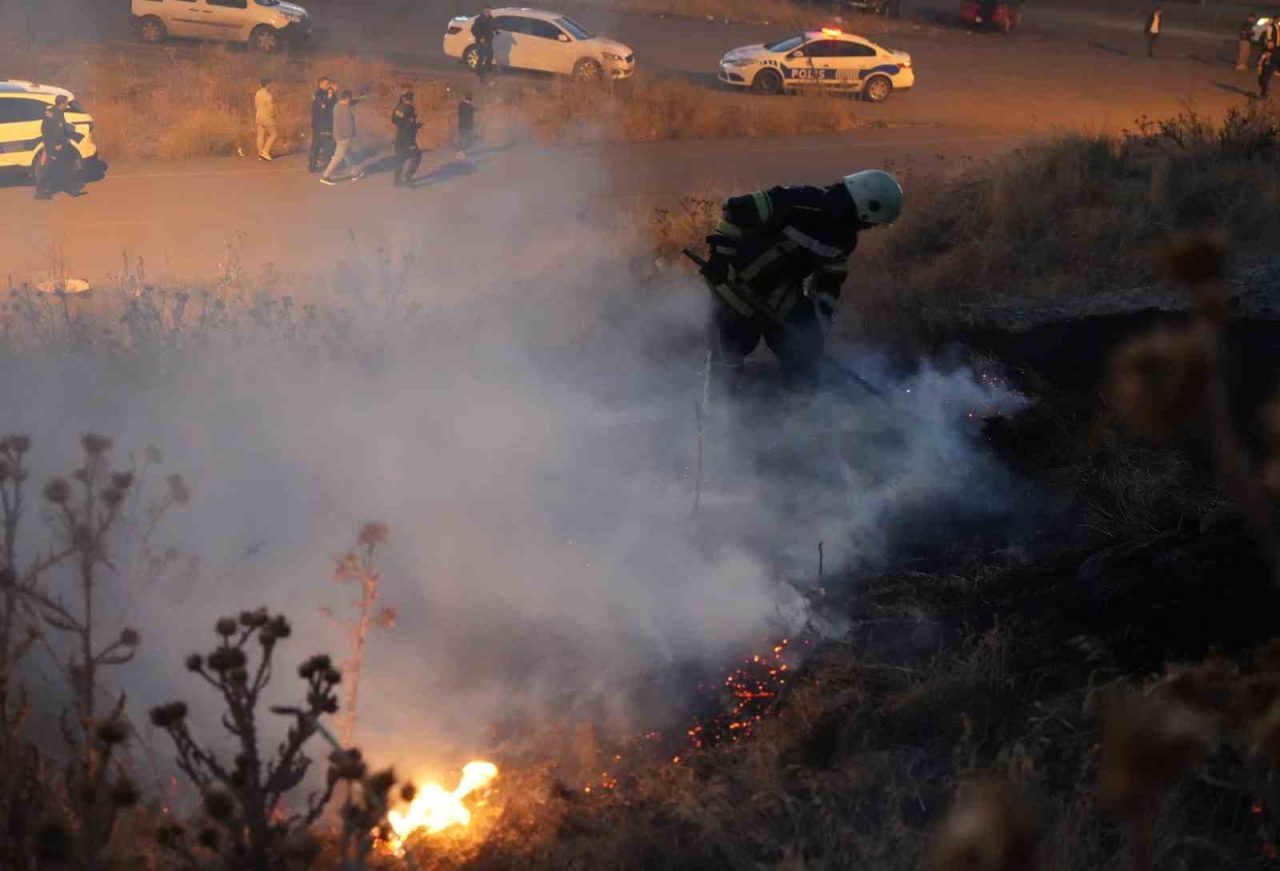 Erzurum’da havai fişek nedeniyle çıkan ot yangını itfaiye ekiplerince söndürüldü.