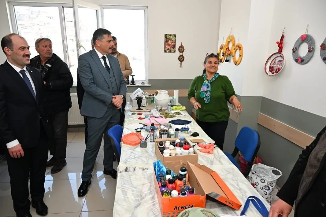 Erzurum Valisi Mustafa Çiftçi’de, Oltu ziyaretleri kapsamında Aile Destek Merkezi’ni (ADEM) ziyaret etti. Kadınların meslek edinerek üretime katılmalarını destekleyen Oltu ADEM, sosyal dayanışmanın ve istihdama katkının güzel bir örneğini oluşturuyor. 20-60 yaş aralığındaki kadınlara mesleki eğitim ve beceri kazandırmayı amaçlayan Oltu ADEM’de devam eden kurslar ve kursiyer sayıları şu şekilde; Kadın Etek Dikimi Kursu – 17 kursiyer, Kadın Üst Giysileri Dikimi Kursu – 17 kursiyer, Ahşap Boyama Kursu – 15 kursiyer, Oyun Odası Kursu – 12 kursiyer, Oyuncak Yapımı Kursu – 12 kursiyer, Nakış Kursu – 18 kursiyer, Özgün Baskı Kursu – 13 kursiyer, Takı Tasarımcısı & Oltu Taşı İşlemeciliği Kursu – 12 kursiyer ve Filografi Kursu – 17 kursiyer olmak üzere toplam kursiyer sayısı 133