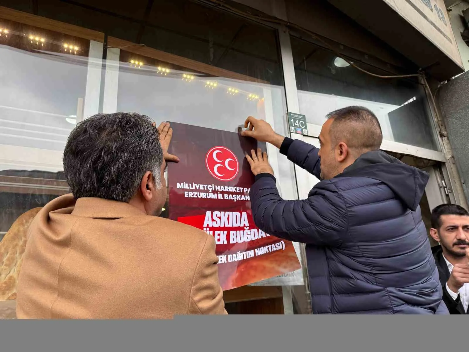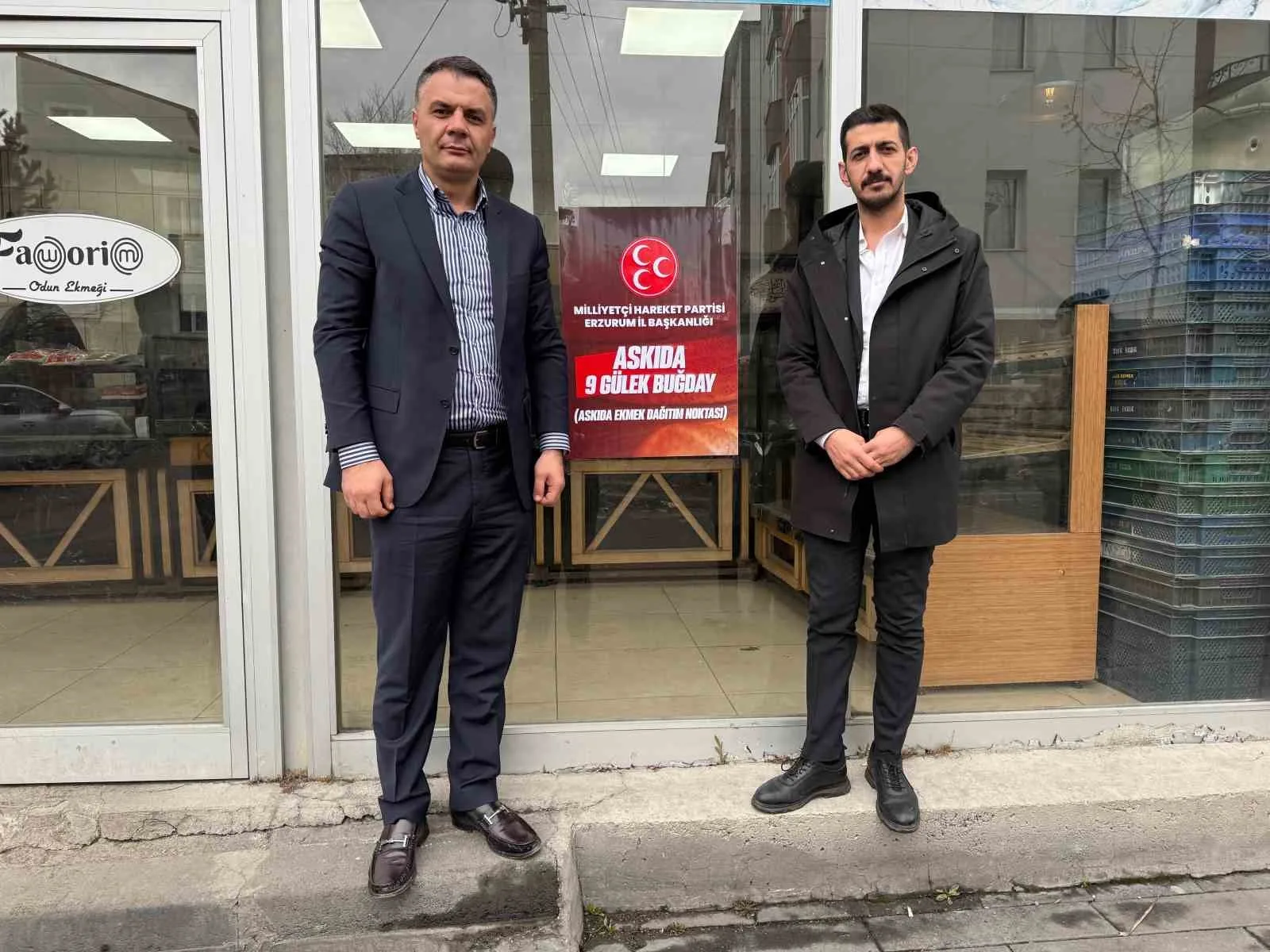 MHP Genel Başkanı Devlet Bahçeli’nin, dar gelirli vatandaşlara destek olmak ve toplumsal dayanışmayı güçlendirmek amacıyla başlattığı “Askıda 9 Gülek Buğday Projesi” Erzurum’da da hayata geçti.