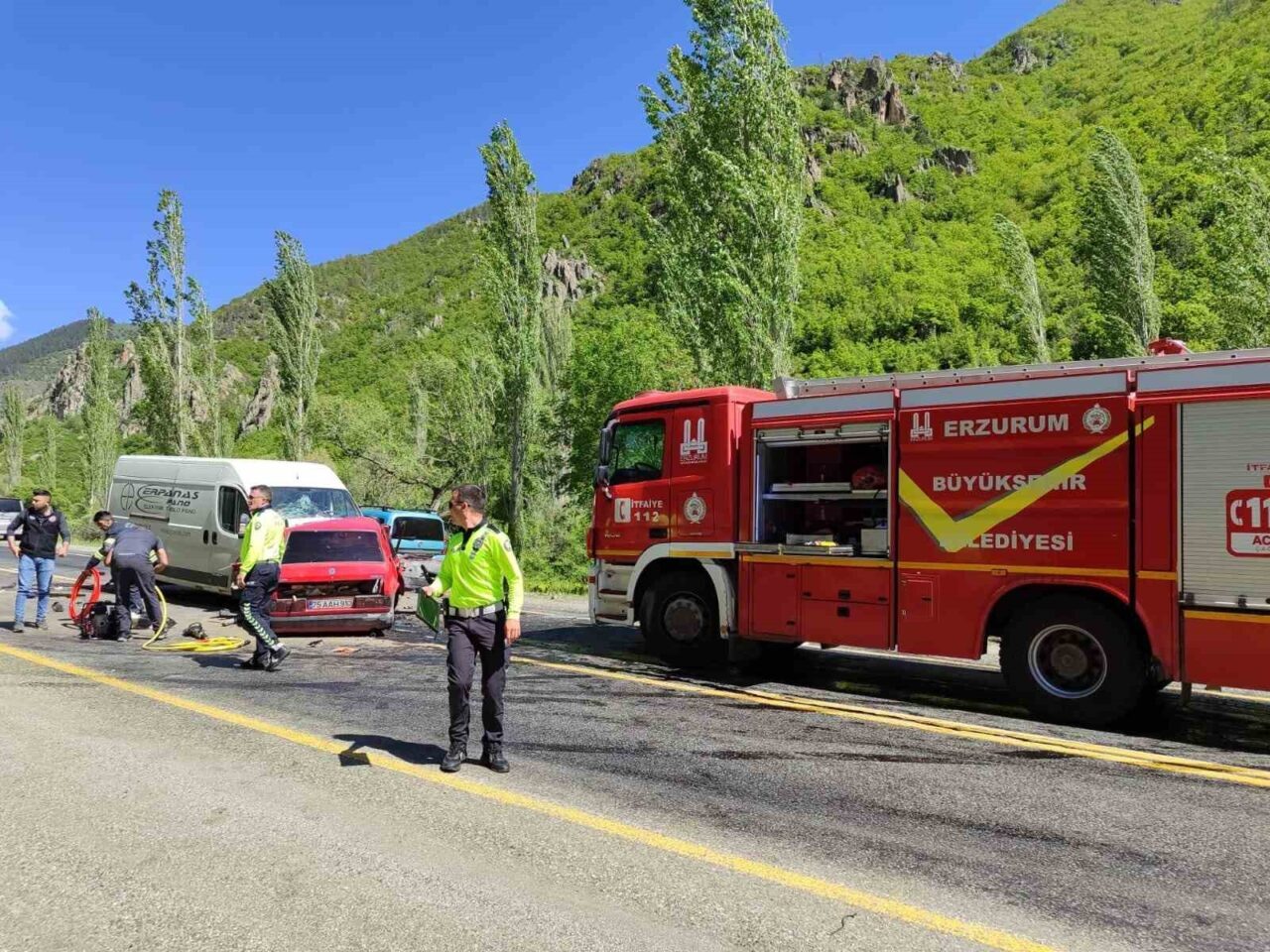 Erzurum’un Şenkaya ilçesinde meydana gelen kazada bir minibüsle kafa kafaya çarpışan Fiat Tofaş marka otomobil adeta demir yığınına döndü. Kazada 1 kişi hayatını kaybederken, 1 kişi de yaralandı.