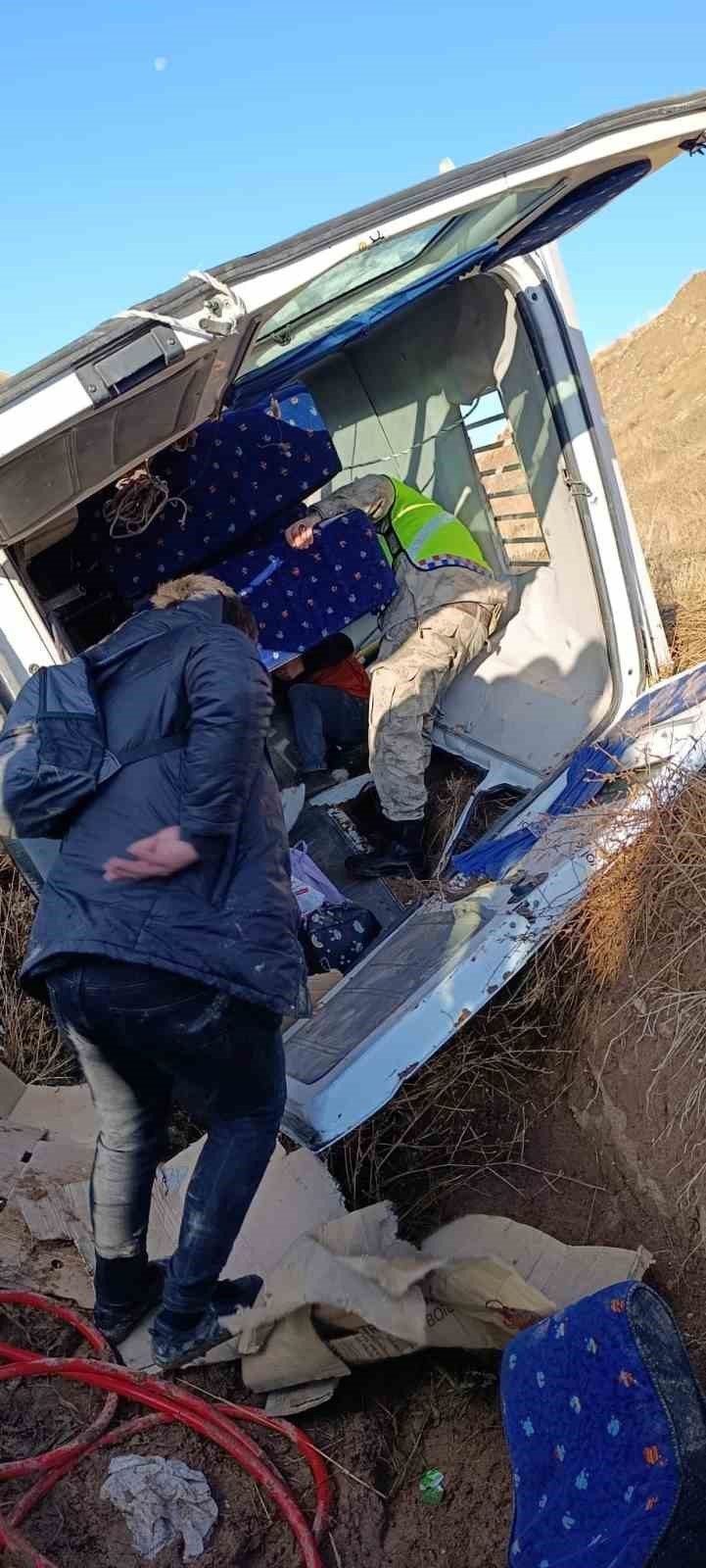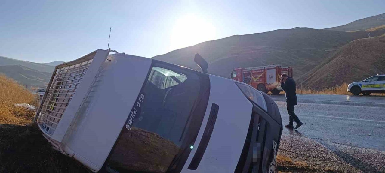 Horasan’dan Eleşkirt yönüne seyir halinde olduğu öğrenilen, sürücü Hikmet Bağrıyanık’ın idaresindeki 52 TC 772 plakalı minibüs, Ağıllı köyü yol ayrımında sürücünün direksiyon hakimiyetini kaybetmesi sonucu karşı şeride geçerek su kanalına devrildi.