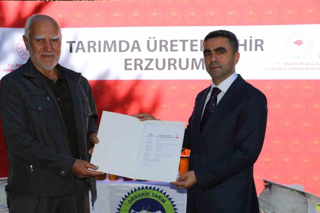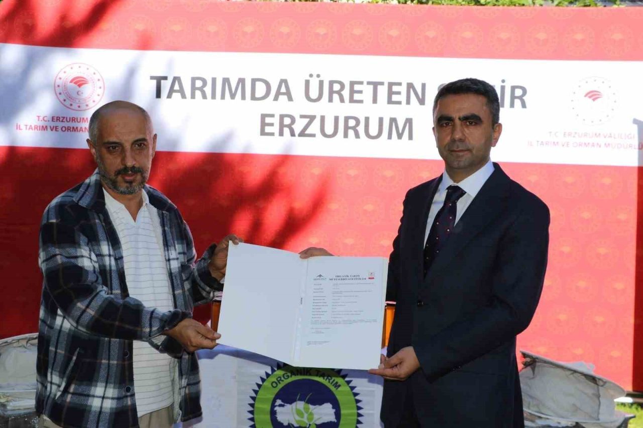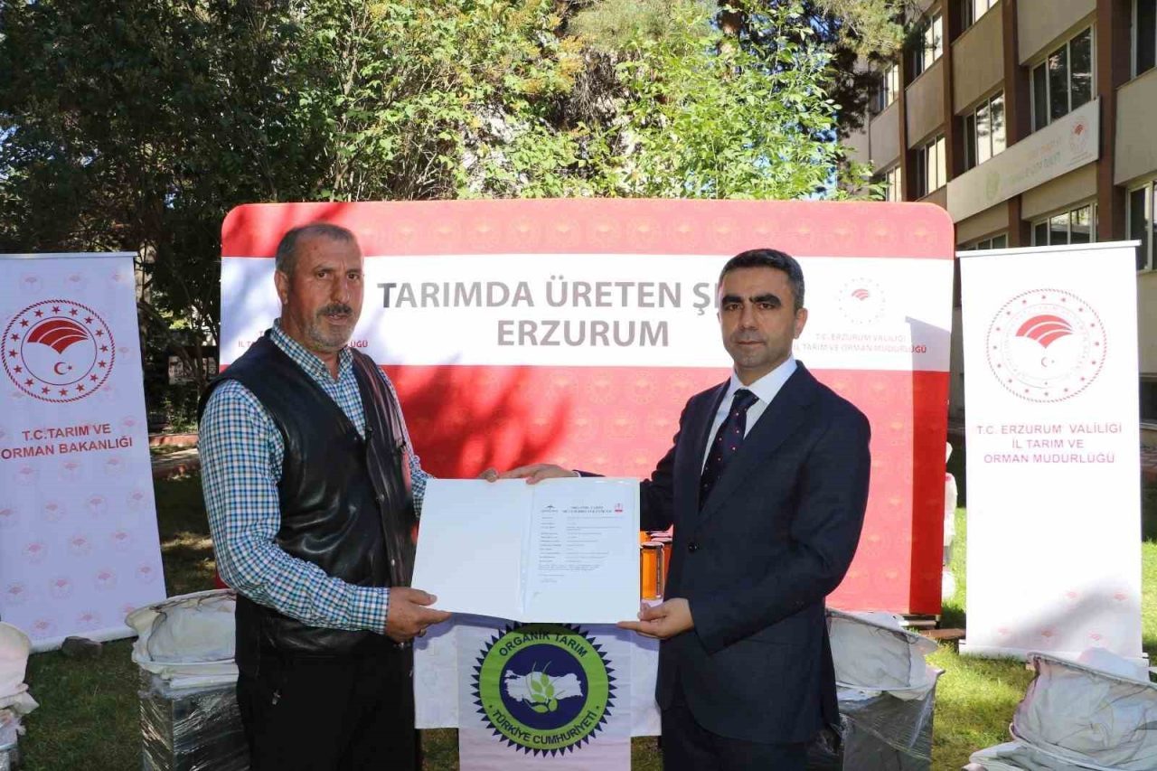 Erzurum Tarım ve Orman İl Müdürlüğü’nce kentte organik bal üretiminin desteklenmesi amacıyla yürütülen “Erzurum Yaylaları Organik Balına Kavuşuyor” projesiyle üreticilere malzeme desteği verilerek sertifikalandırıldı.