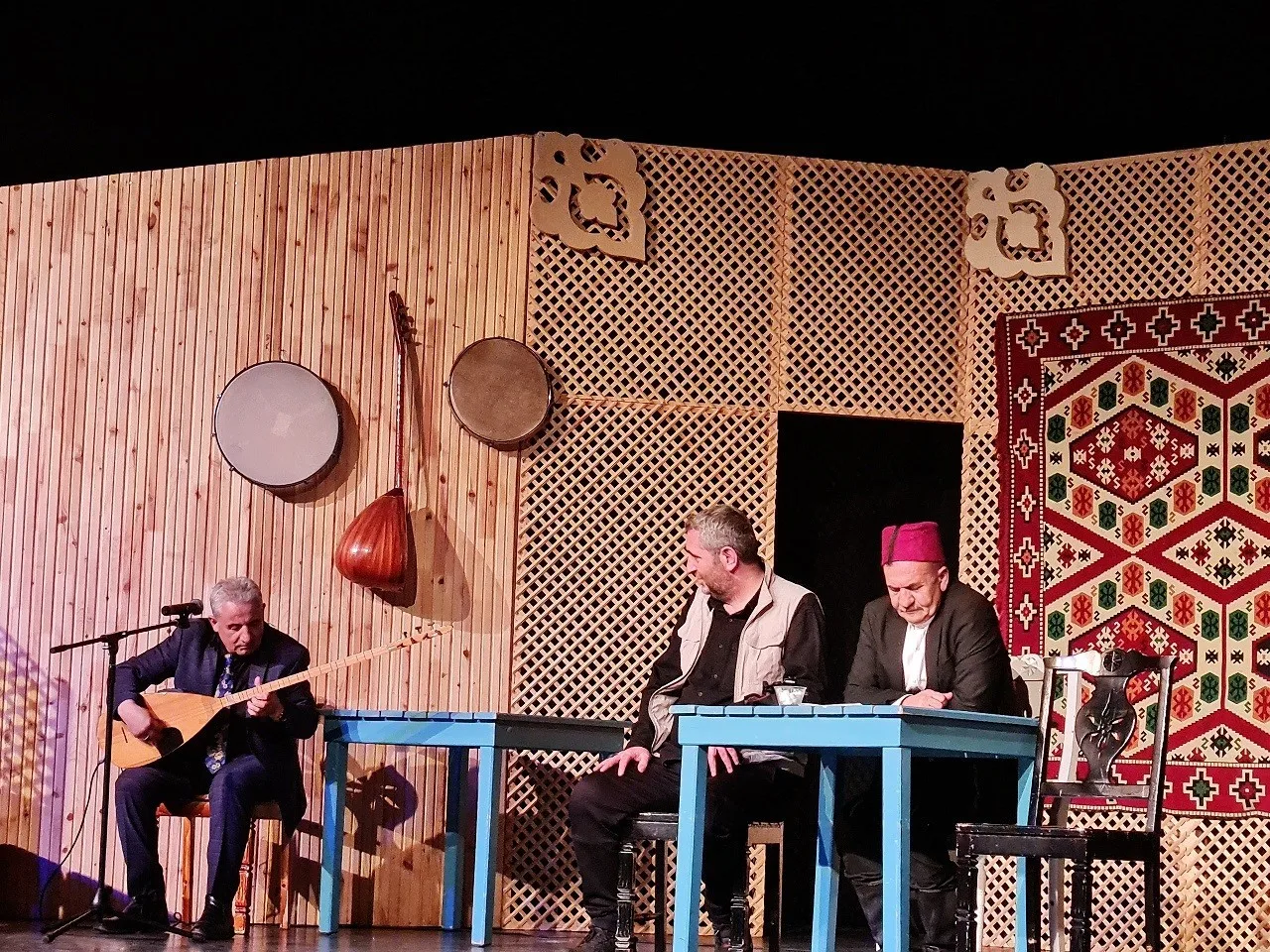 Dadaşlar diyarı Erzurum’un seyirlik oyunlarını konu alan oyunda Halk Ozanı Rahim Sağlam da sazı ve sözü ile geceye renk kattı.