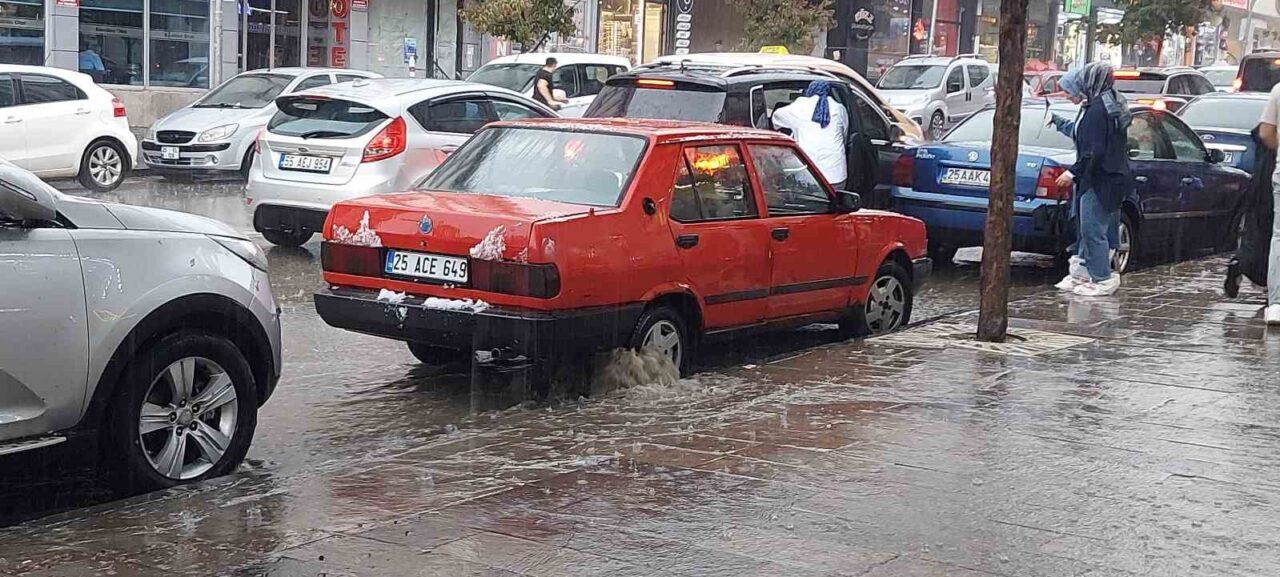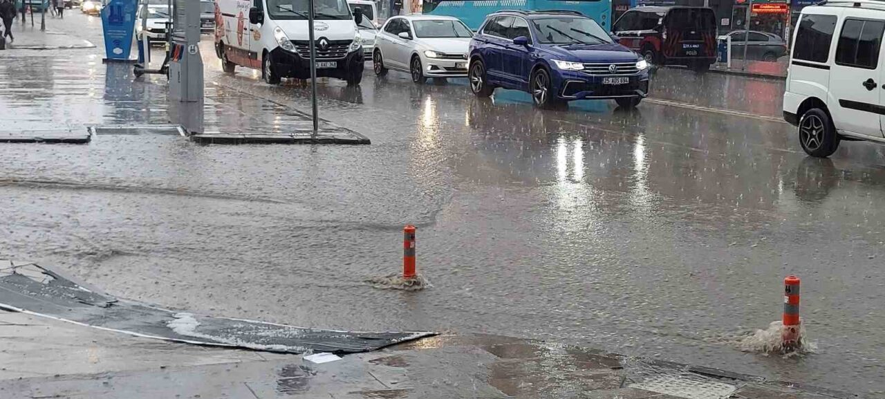 Erzurum’da sağanak yağış hayatı olumsuz etkiledi.