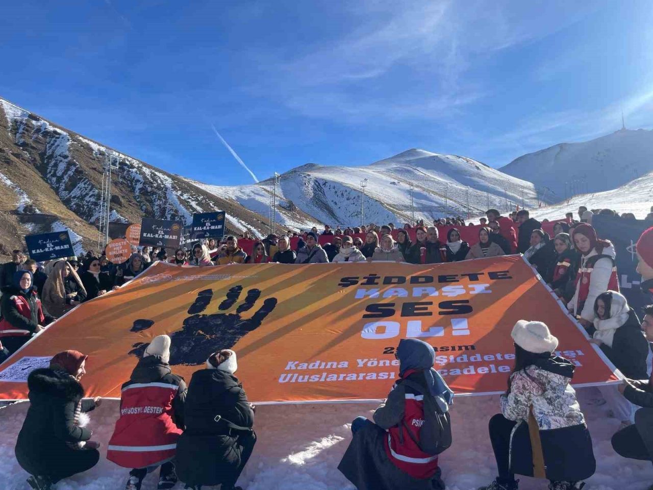 Kadın Konukevi Müdürü Aynur Yılmaz ise konuşmasında şu ifadeleri kullandı: “Kadına yönelik şiddet bireysel bir acı değil, toplumsal bir yaradır. Şiddet mağduru tüm kadınlara sesleniyoruz: Yalnız değilsiniz. Gizlilik esaslı, ücretsiz ve erişilebilir hizmetlerimizle 7/24 yanınızdayız. Bugün Palandöken’den yükselen bu güçlü ses, şiddetin hiçbir gerekçeyle mazur görülemeyeceğini bir kez daha göstermiştir.”