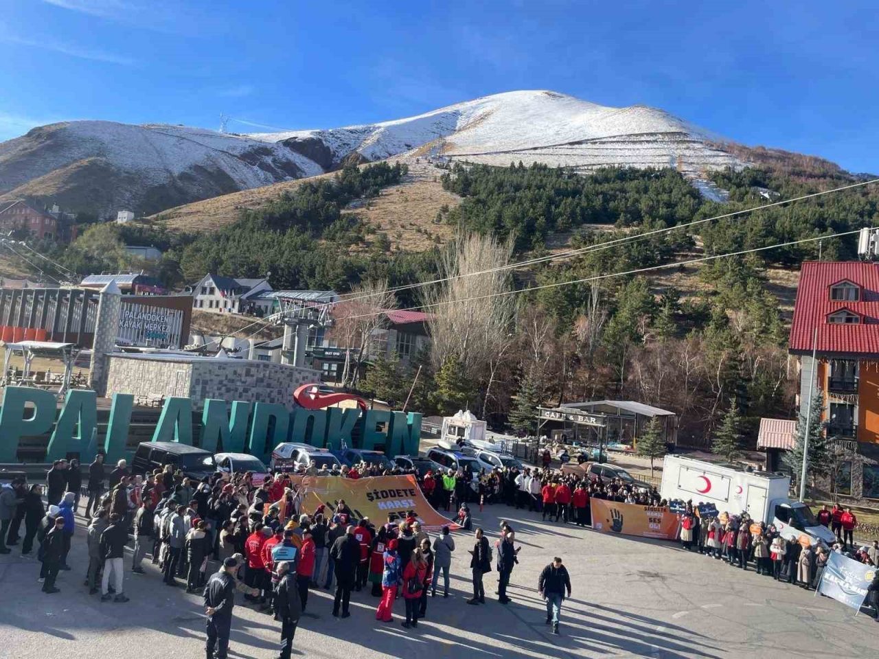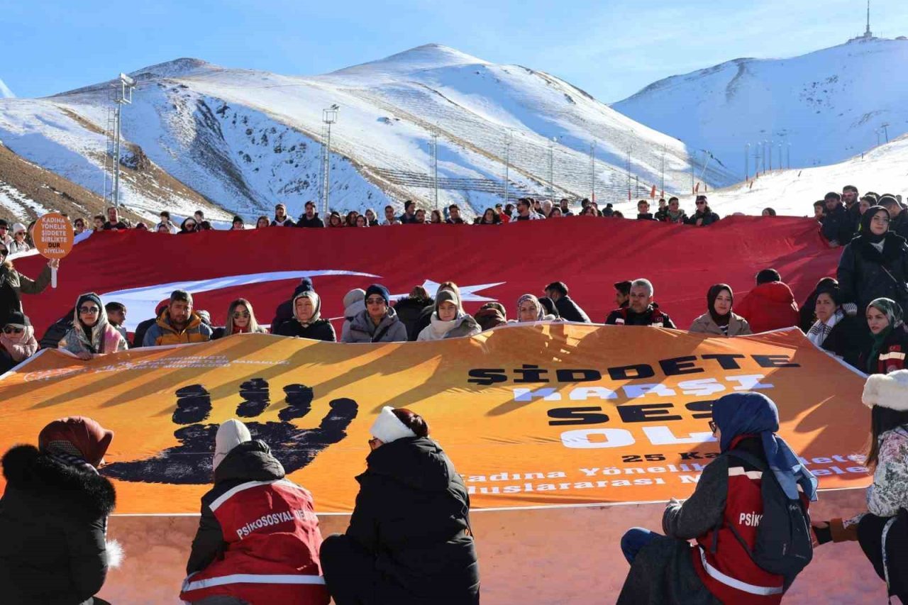 Erzurum Aile ve Sosyal Hizmetler İl Müdürlüğü’nün koordinasyonunda, Palandöken Kayak Merkezi’nde gerçekleştirilen “Şiddete Karşı Tek Yürek Yürüyüşü”, kamu kurumları, STK’lar ve 400’e yakın vatandaş katıldı.